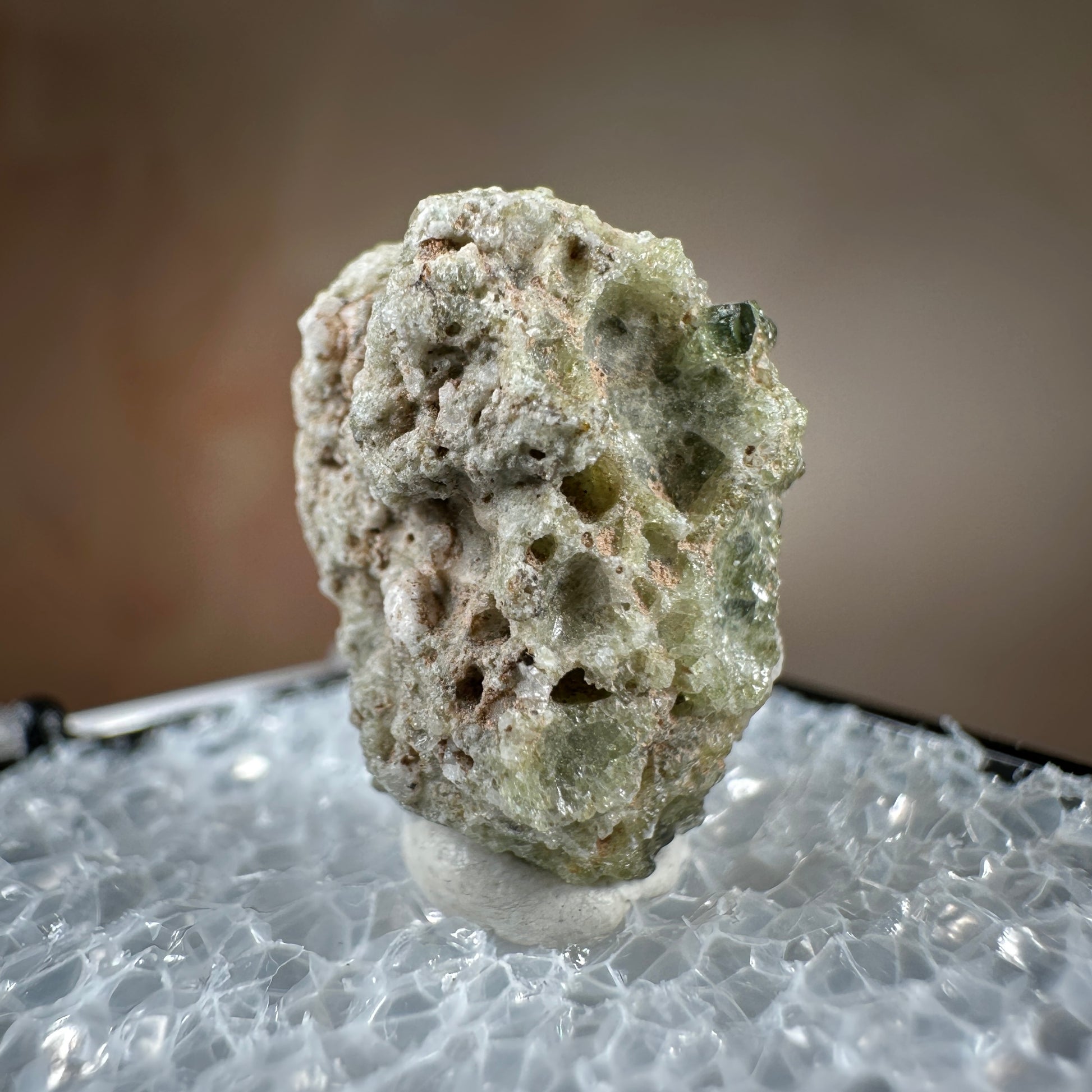 One interesting characteristic of Trinitite, is the sand grain textured bottom, with a smooth melted upper surface. This has lead many to believe these Trinitite pieces were actually formed from sand that was sucked up into the fireball of the explosion and later fell into the crater, rather than simply melting in place beneath the explosion. The Trinity test site is usually off limits, opening only 1-2 times a year for visitors. Our Trinitite is from a former rock shop owner who retired years ago, he had this Trinitite stored away for decades.
