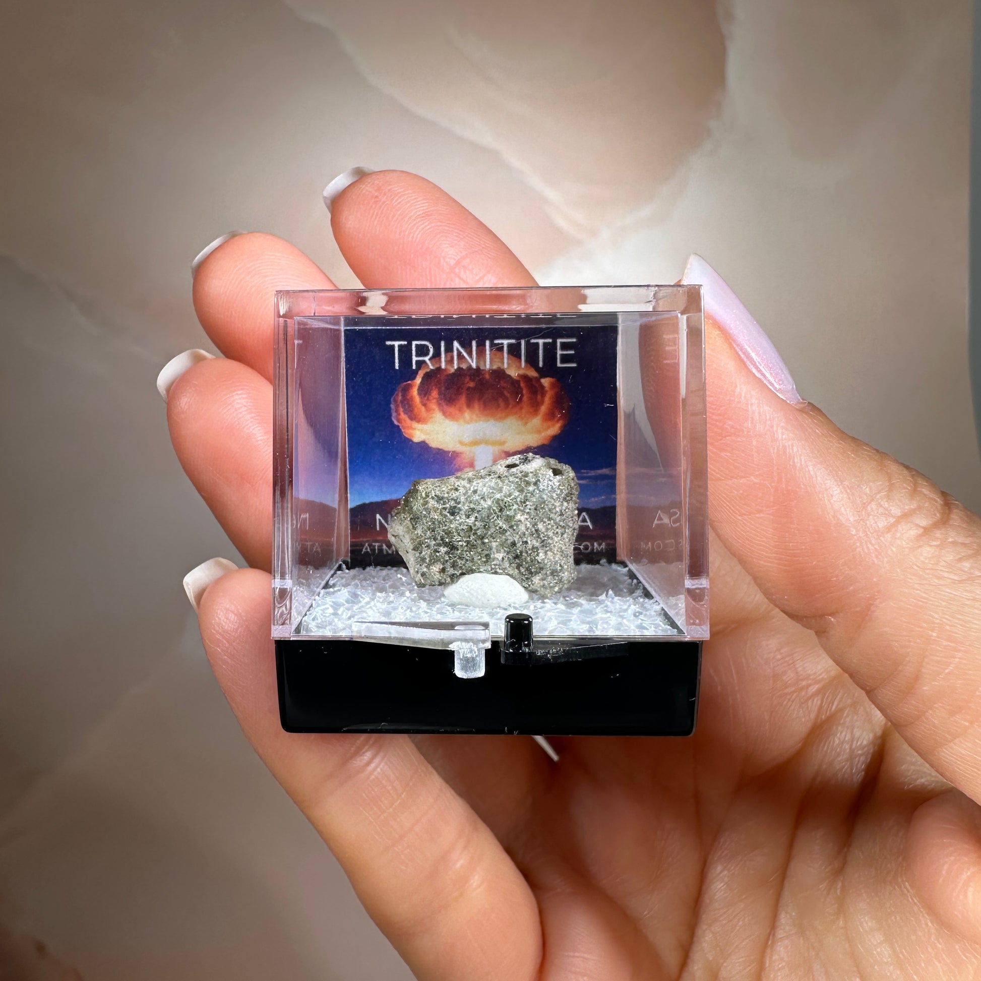 Own a piece of history. Trinitite is a rare, olive-green glass created when desert sand fused under the intense heat of the world’s first atomic bomb test—code-named Trinity.