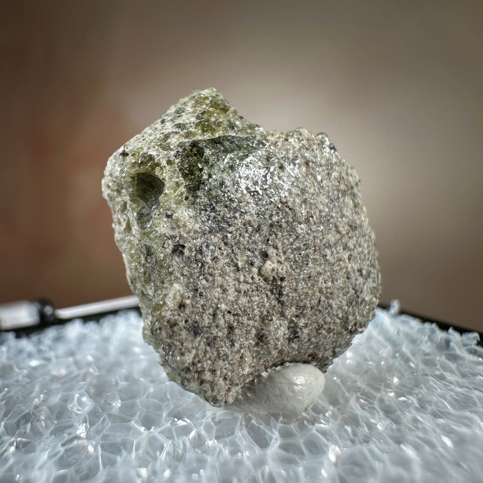 One interesting characteristic of Trinitite, is the sand grain textured bottom, with a smooth melted upper surface. This has lead many to believe these Trinitite pieces were actually formed from sand that was sucked up into the fireball of the explosion and later fell into the crater, rather than simply melting in place beneath the explosion. The Trinity test site is usually off limits, opening only 1-2 times a year for visitors. Our Trinitite is from a former rock shop owner who retired years ago, he had this Trinitite stored away for decades.