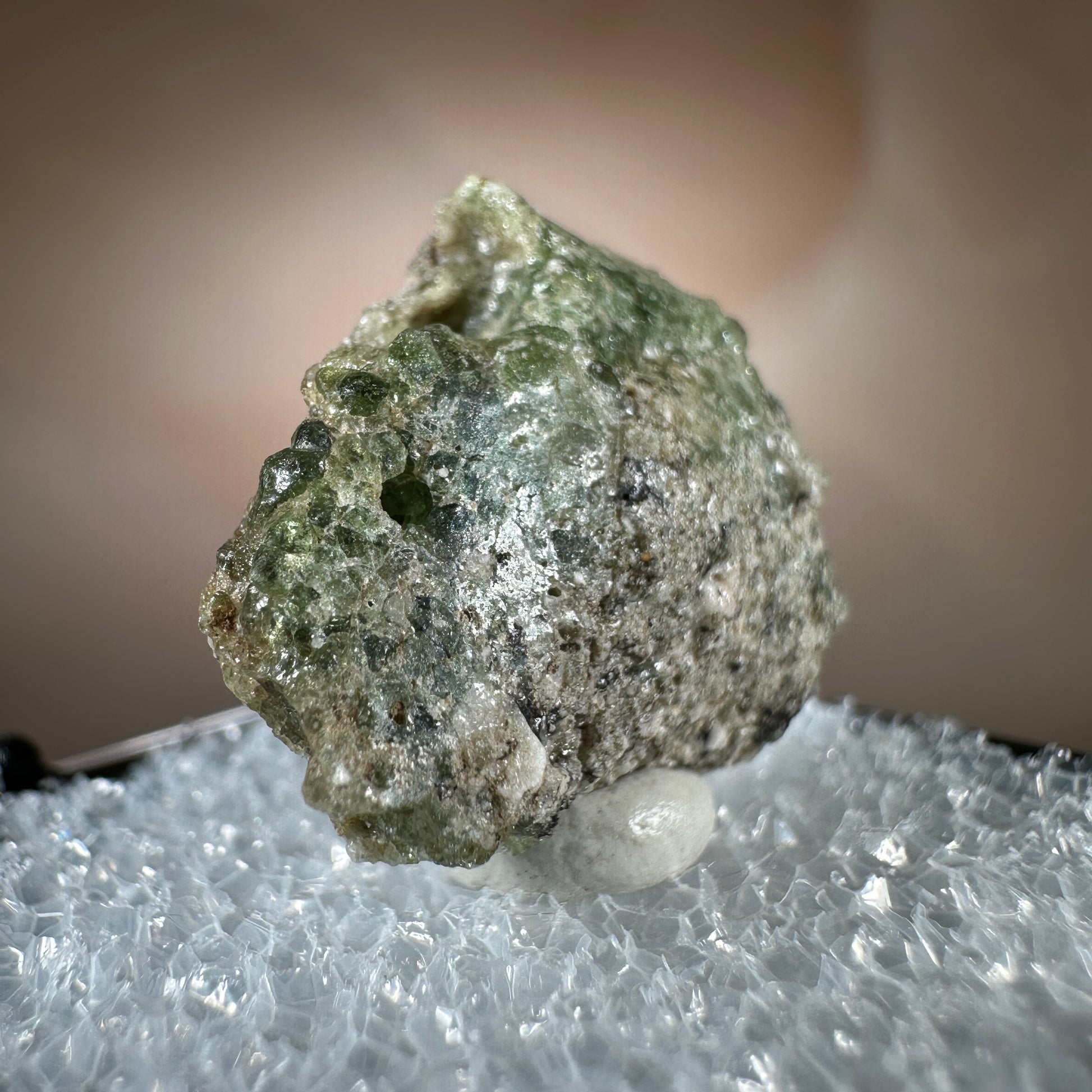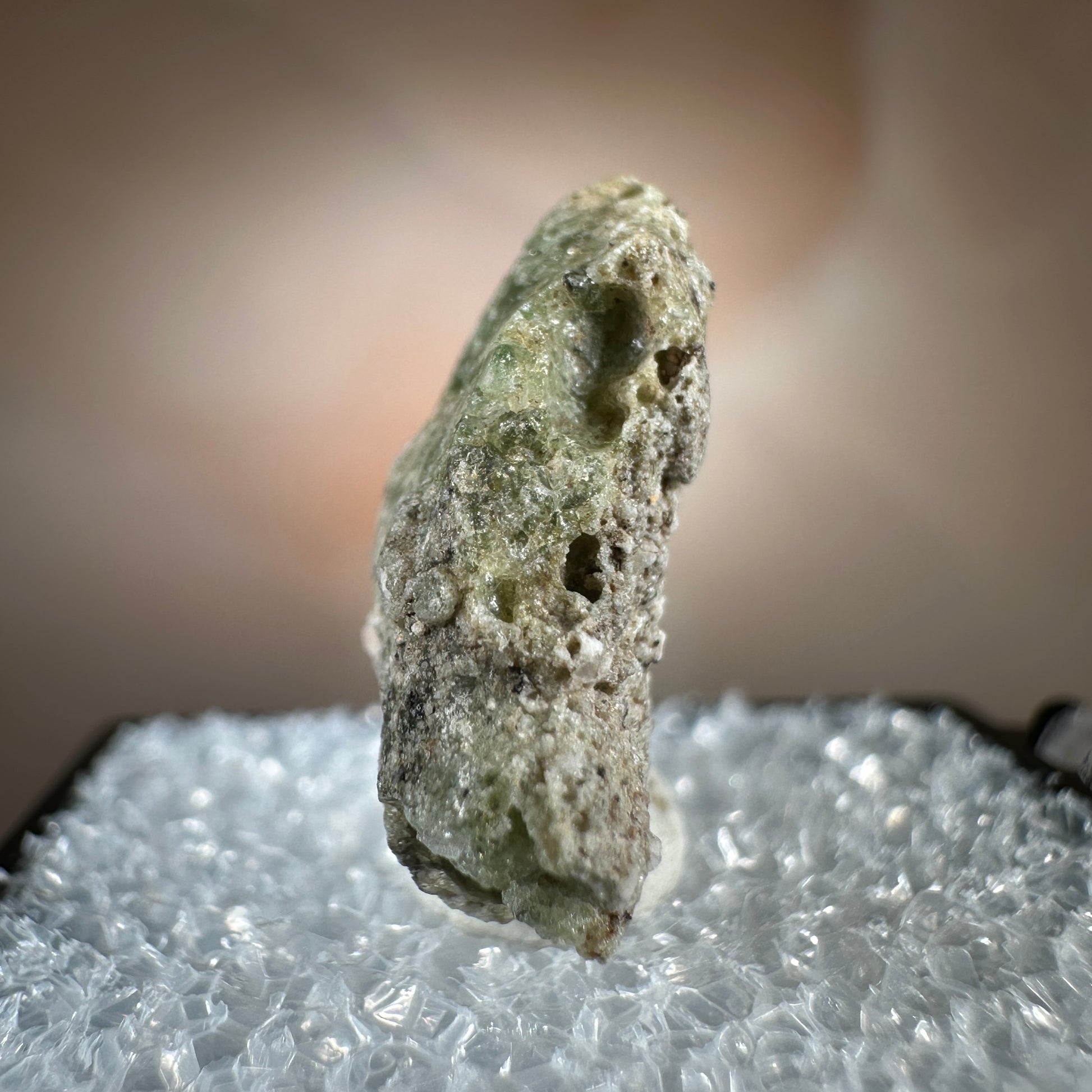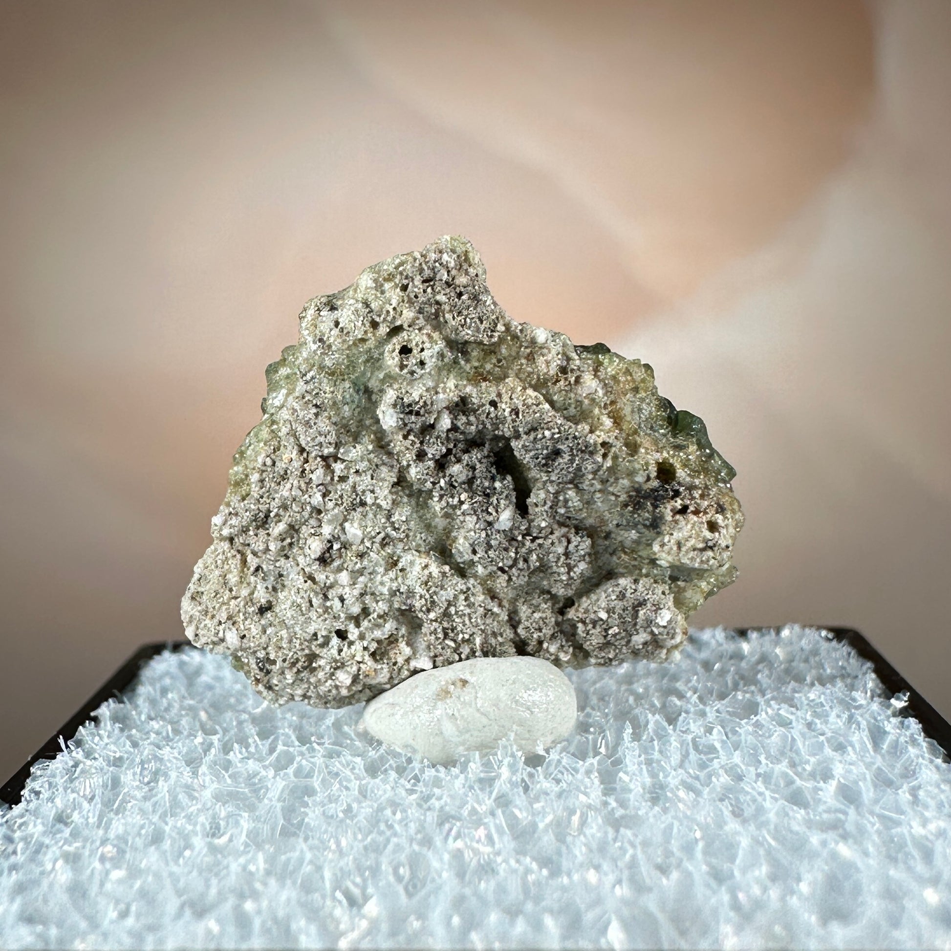 One interesting characteristic of Trinitite, is the sand grain textured bottom, with a smooth melted upper surface. This has lead many to believe these Trinitite pieces were actually formed from sand that was sucked up into the fireball of the explosion and later fell into the crater, rather than simply melting in place beneath the explosion. The Trinity test site is usually off limits, opening only 1-2 times a year for visitors. Our Trinitite is from a former rock shop owner who retired years ago, he had this Trinitite stored away for decades.