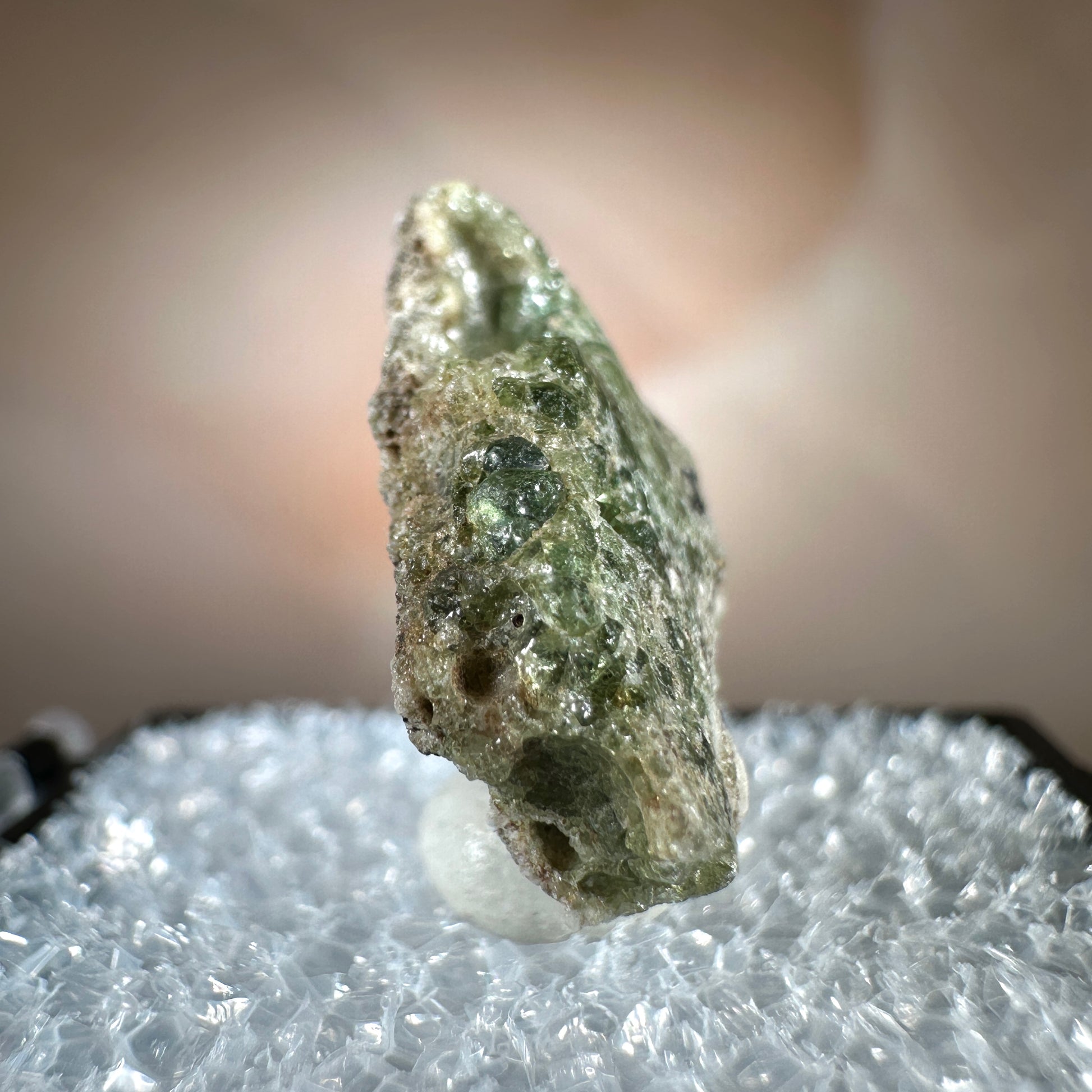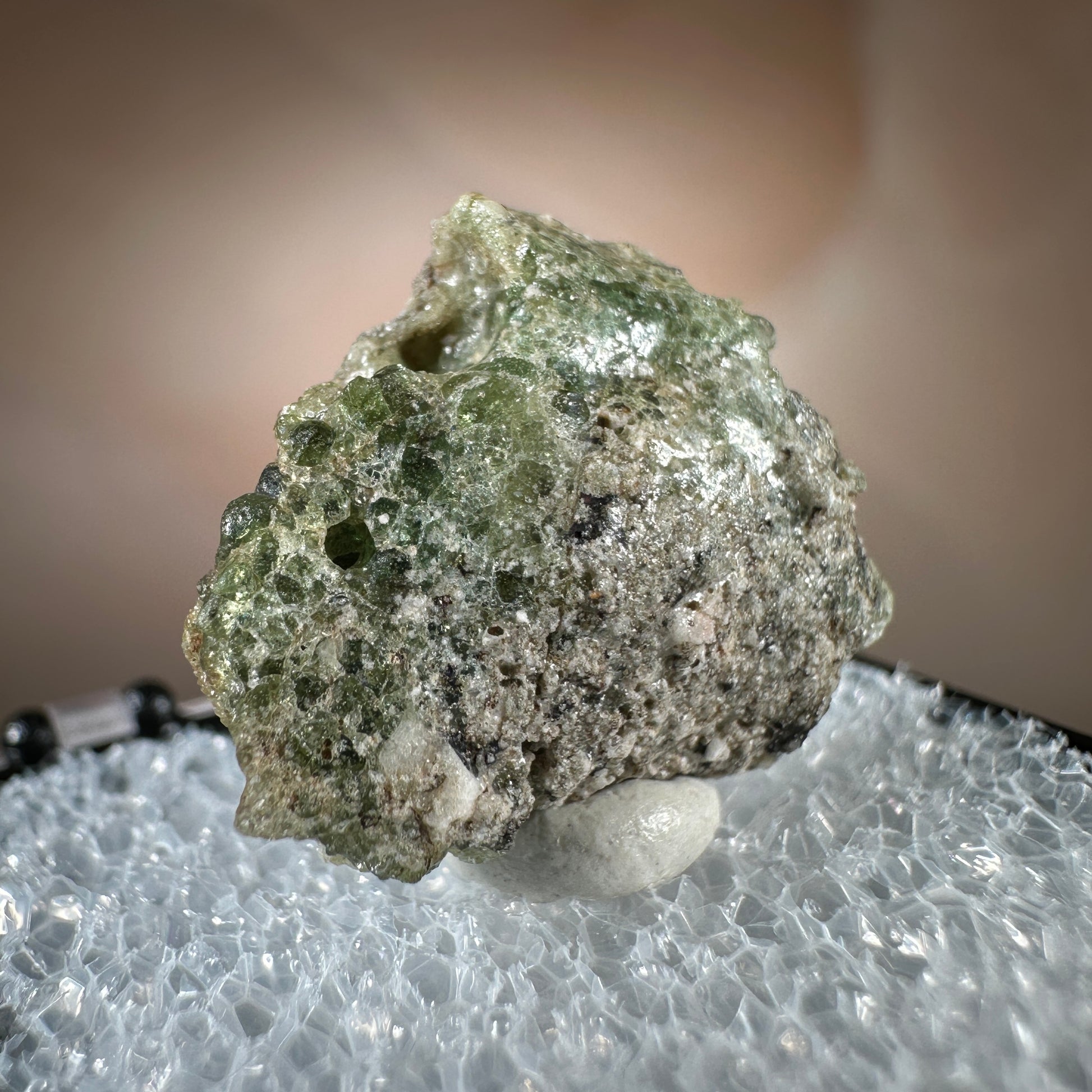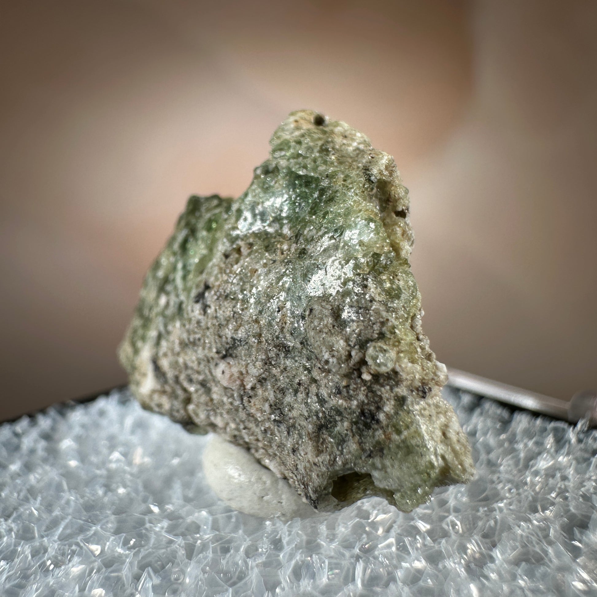 One interesting characteristic of Trinitite, is the sand grain textured bottom, with a smooth melted upper surface. This has lead many to believe these Trinitite pieces were actually formed from sand that was sucked up into the fireball of the explosion and later fell into the crater, rather than simply melting in place beneath the explosion. The Trinity test site is usually off limits, opening only 1-2 times a year for visitors. Our Trinitite is from a former rock shop owner who retired years ago, he had this Trinitite stored away for decades.