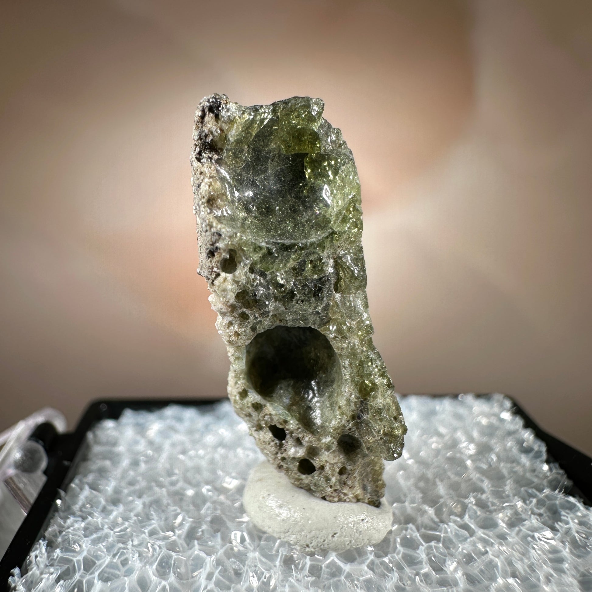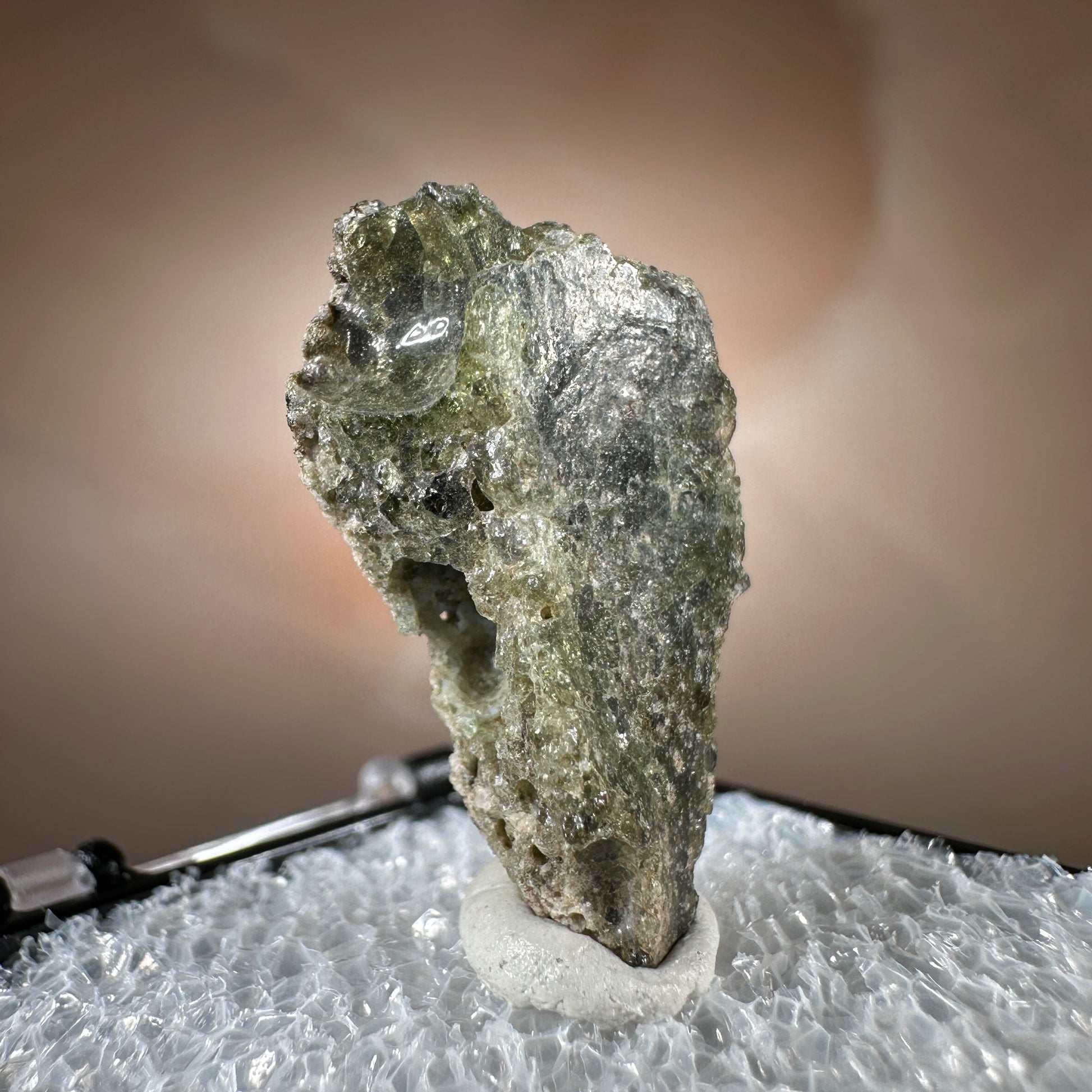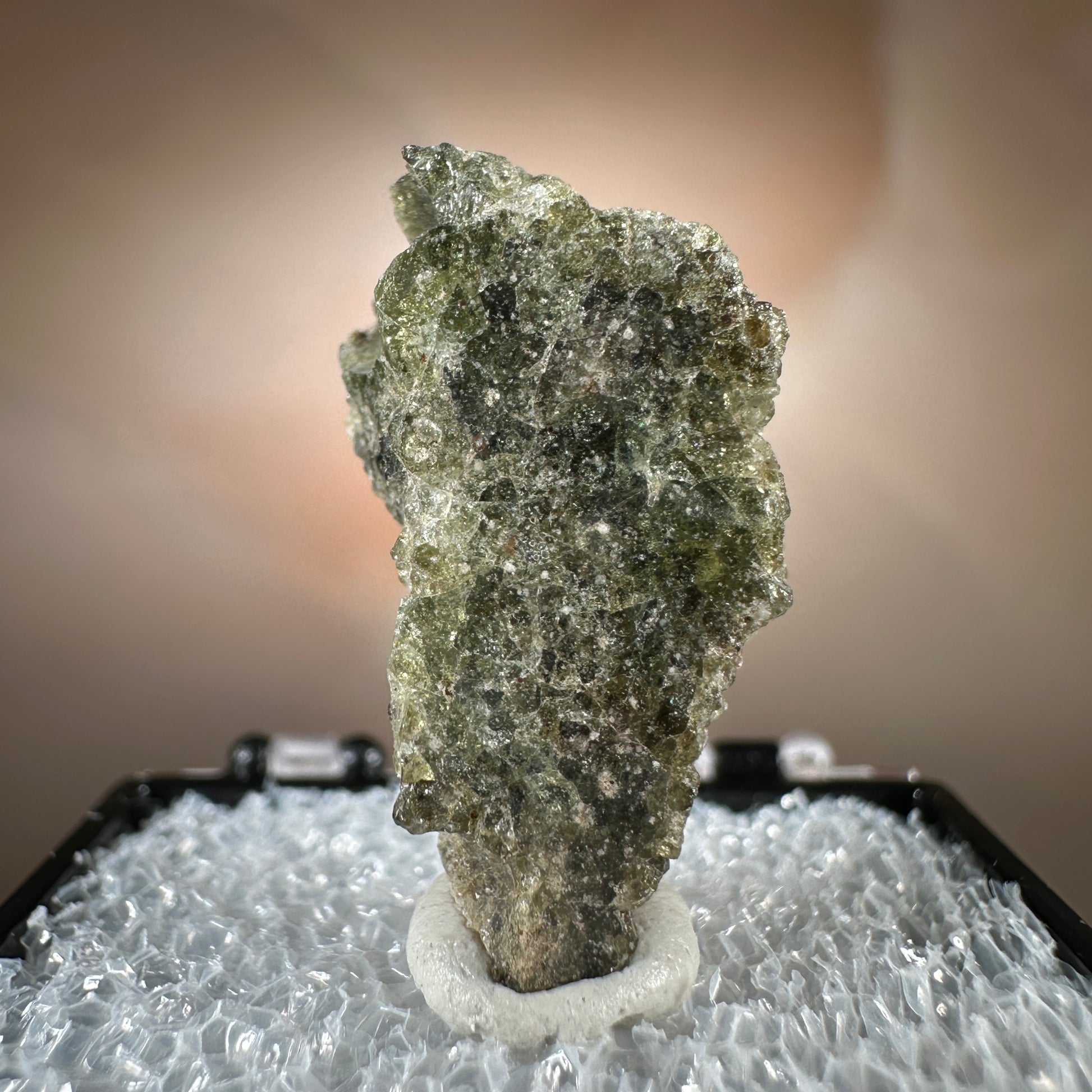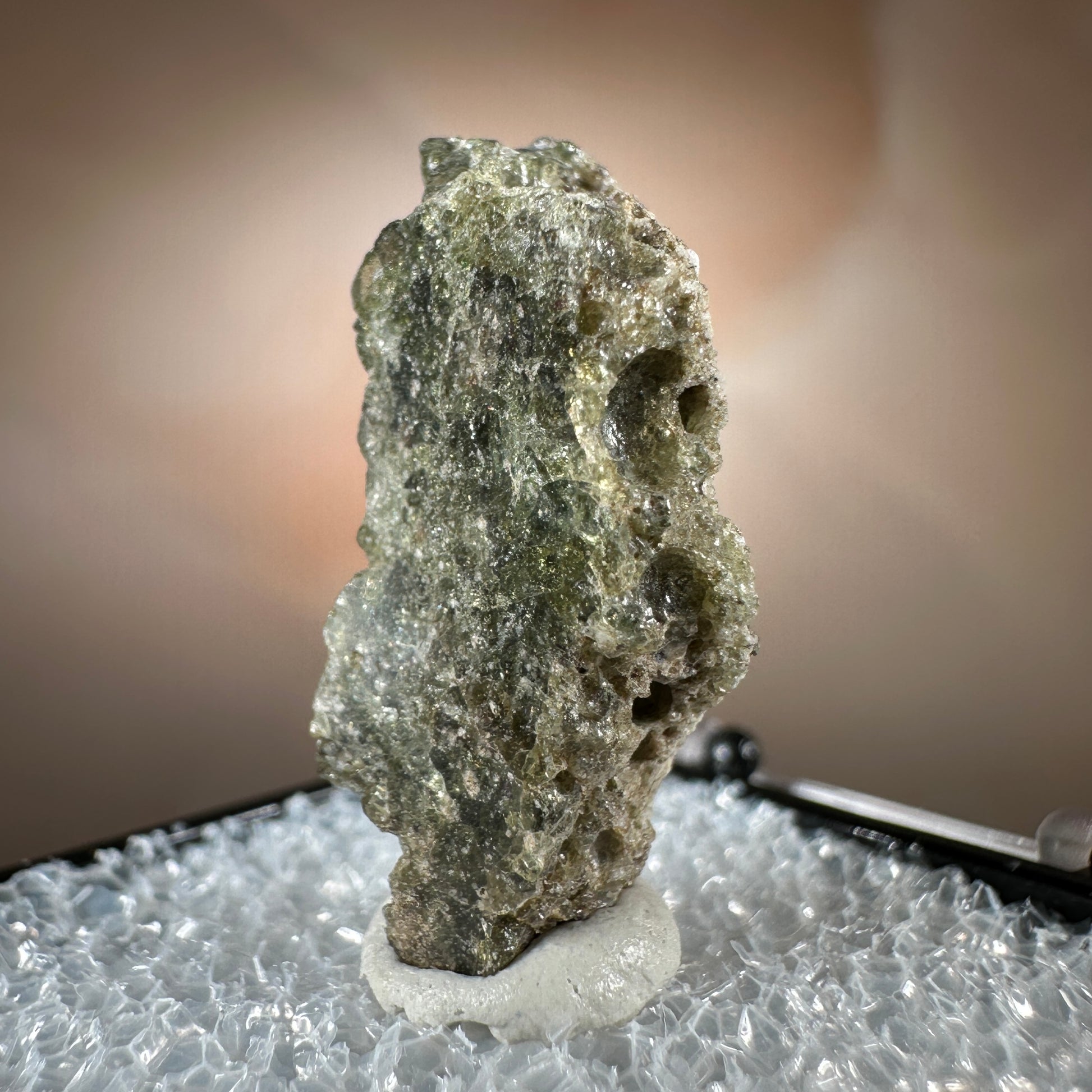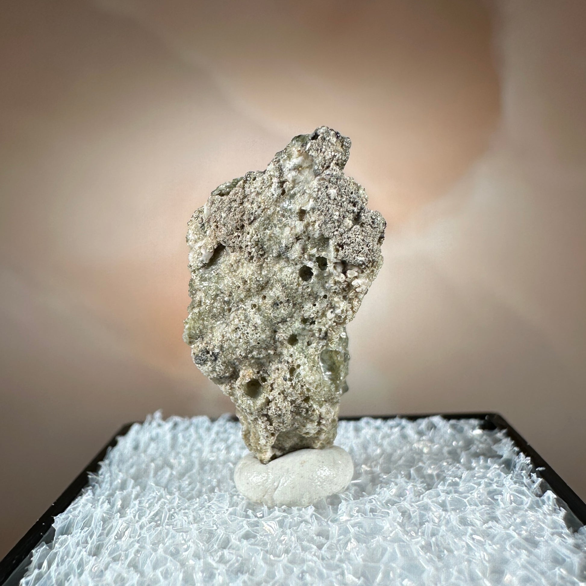 One interesting characteristic of Trinitite, is the sand grain textured bottom, with a smooth melted upper surface. This has lead many to believe these Trinitite pieces were actually formed from sand that was sucked up into the fireball of the explosion and later fell into the crater, rather than simply melting in place beneath the explosion. The Trinity test site is usually off limits, opening only 1-2 times a year for visitors. Our Trinitite is from a former rock shop owner who retired years ago, he had this Trinitite stored away for decades.