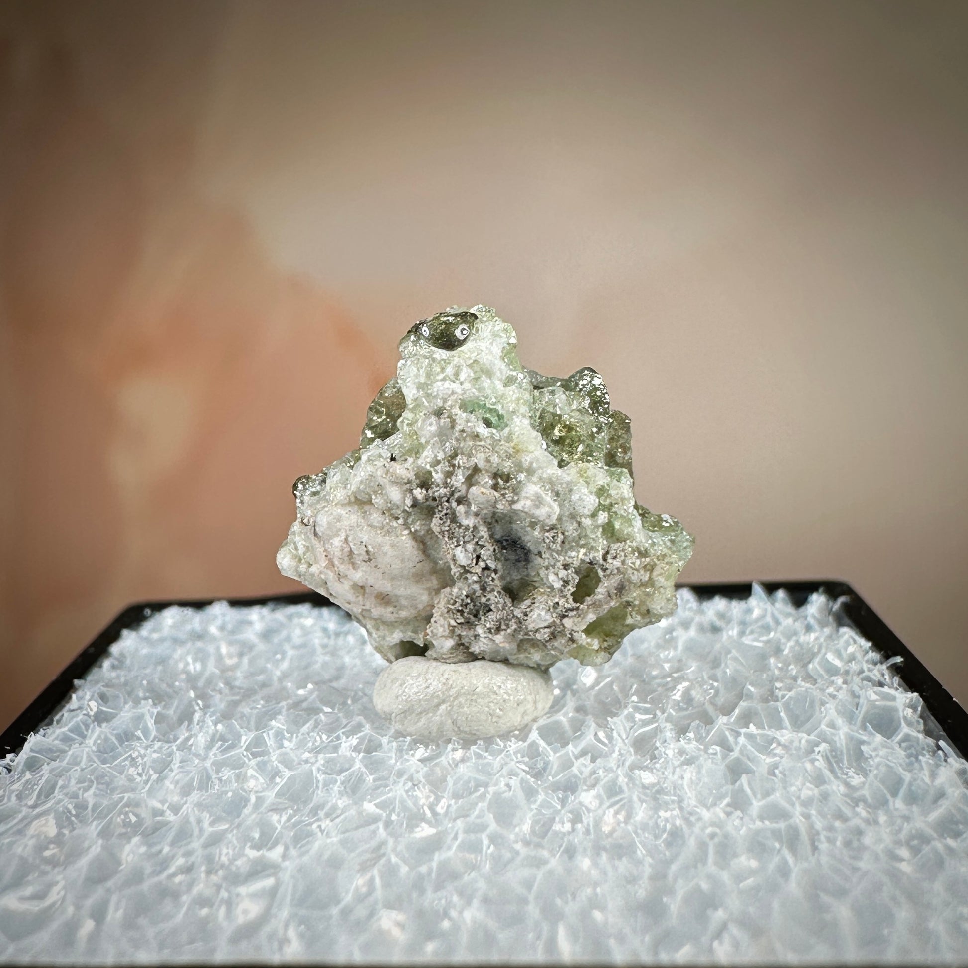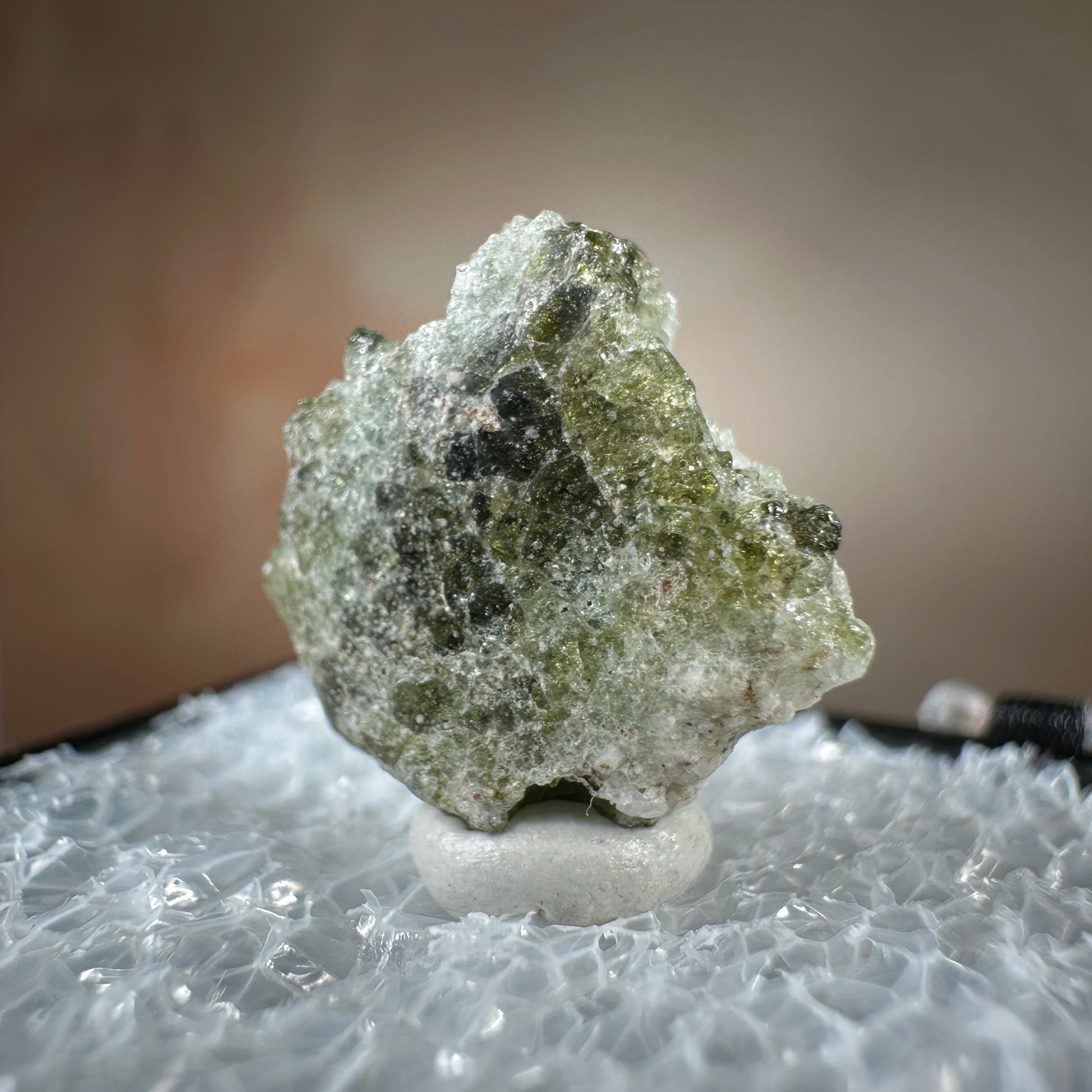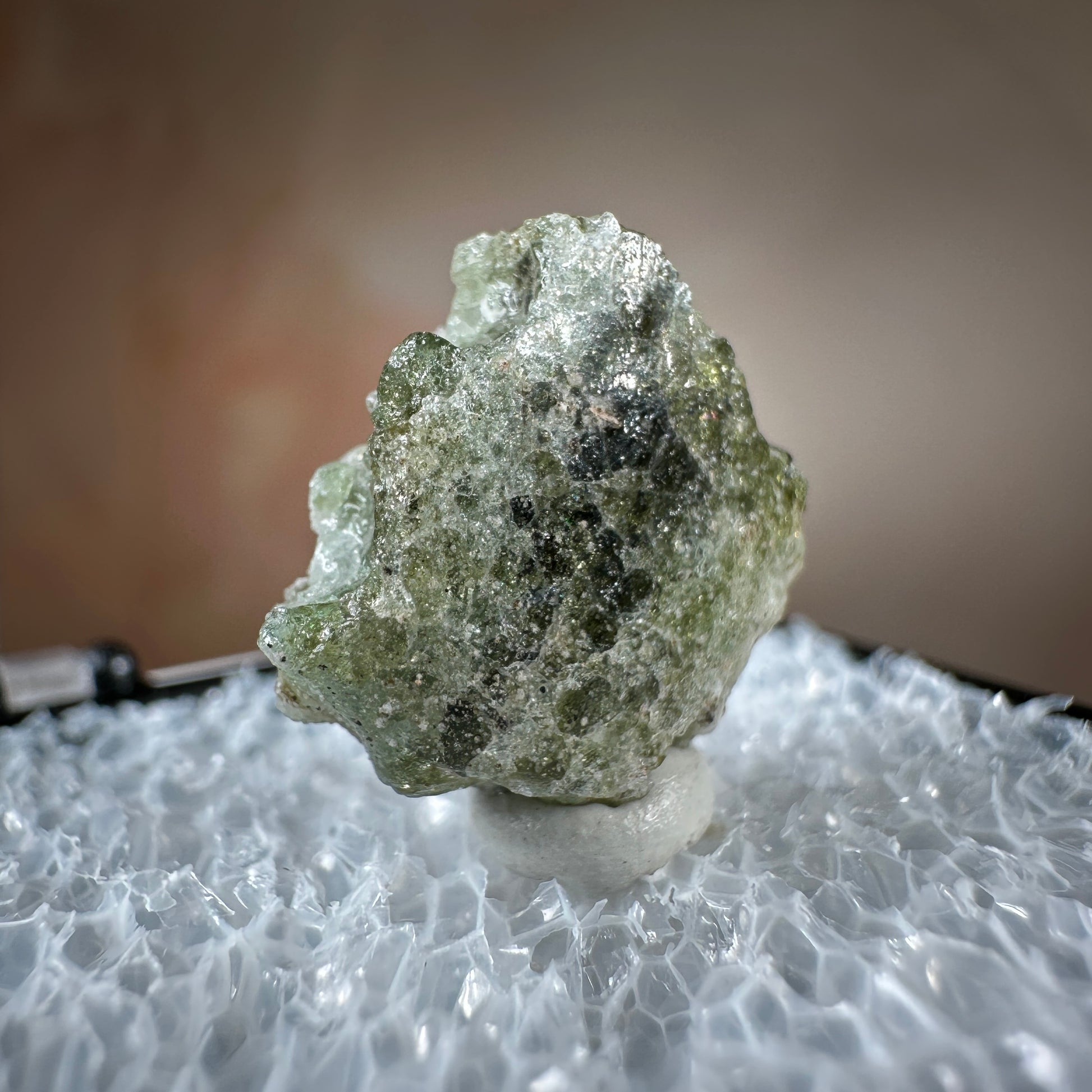 One interesting characteristic of Trinitite, is the sand grain textured bottom, with a smooth melted upper surface. This has lead many to believe these Trinitite pieces were actually formed from sand that was sucked up into the fireball of the explosion and later fell into the crater, rather than simply melting in place beneath the explosion. The Trinity test site is usually off limits, opening only 1-2 times a year for visitors. Our Trinitite is from a former rock shop owner who retired years ago, he had this Trinitite stored away for decades.