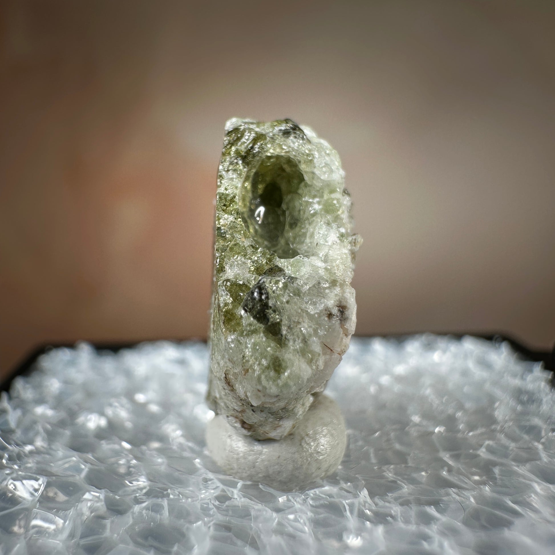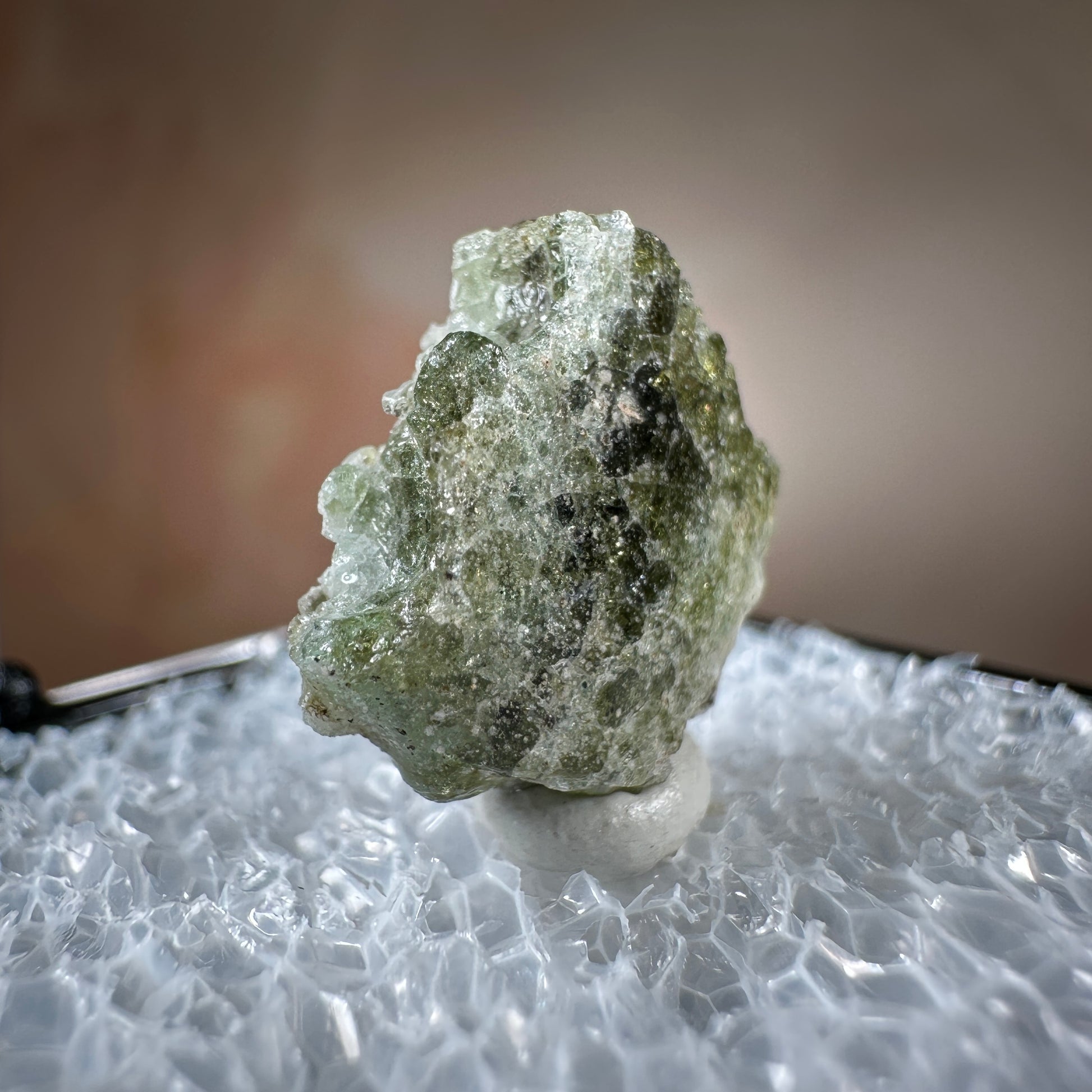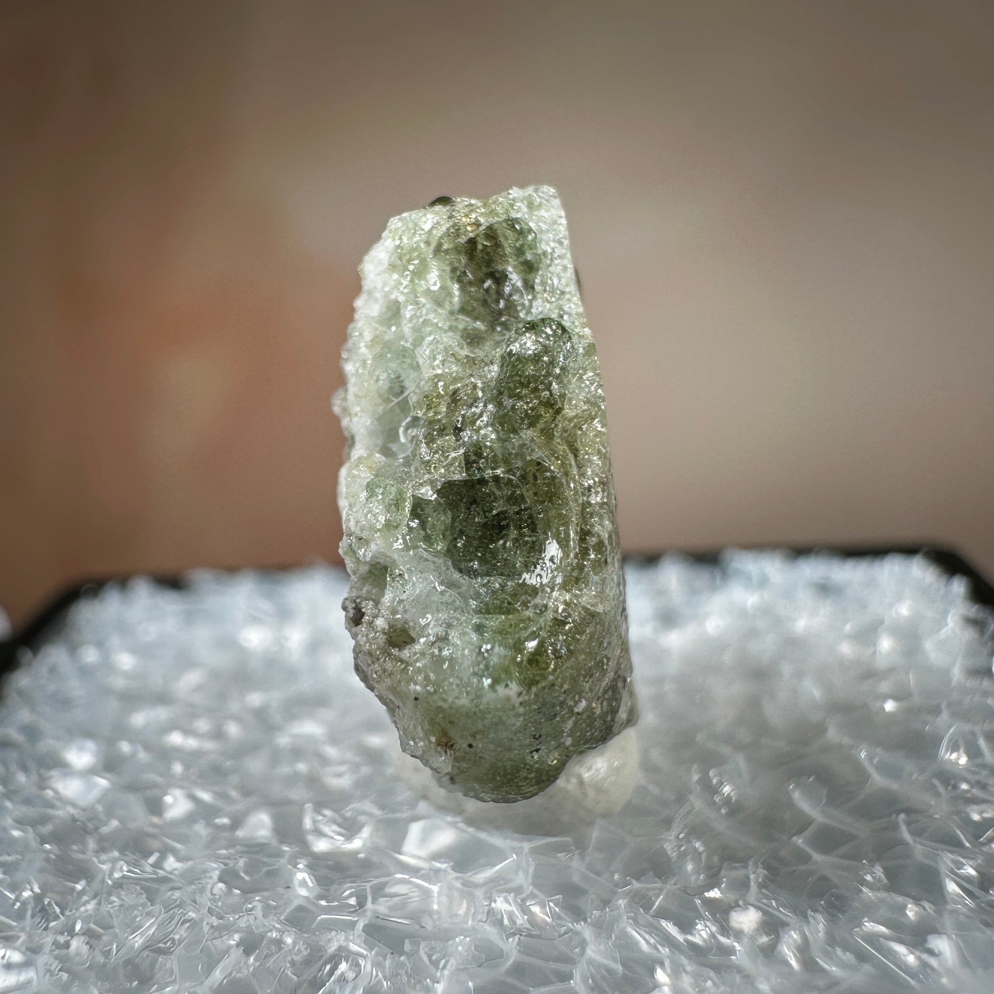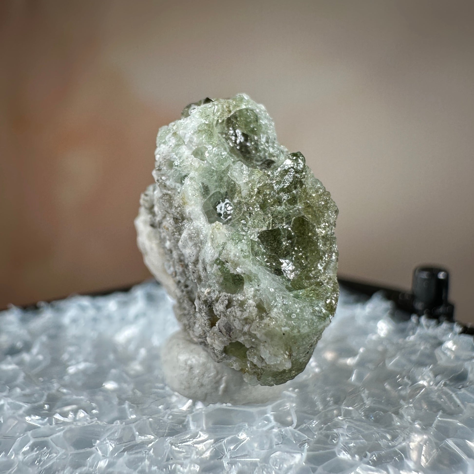 One interesting characteristic of Trinitite, is the sand grain textured bottom, with a smooth melted upper surface. This has lead many to believe these Trinitite pieces were actually formed from sand that was sucked up into the fireball of the explosion and later fell into the crater, rather than simply melting in place beneath the explosion. The Trinity test site is usually off limits, opening only 1-2 times a year for visitors. Our Trinitite is from a former rock shop owner who retired years ago, he had this Trinitite stored away for decades.