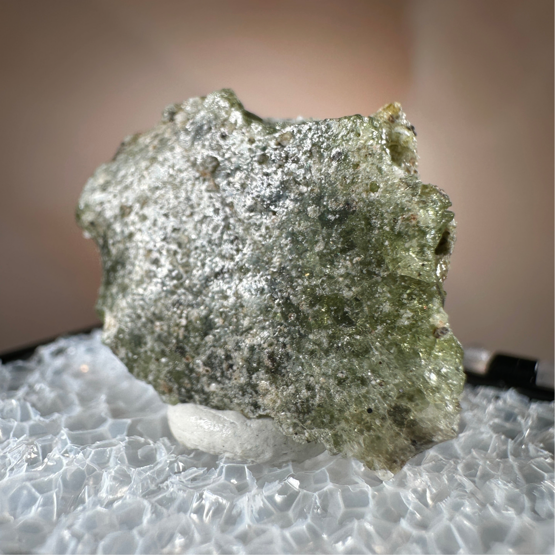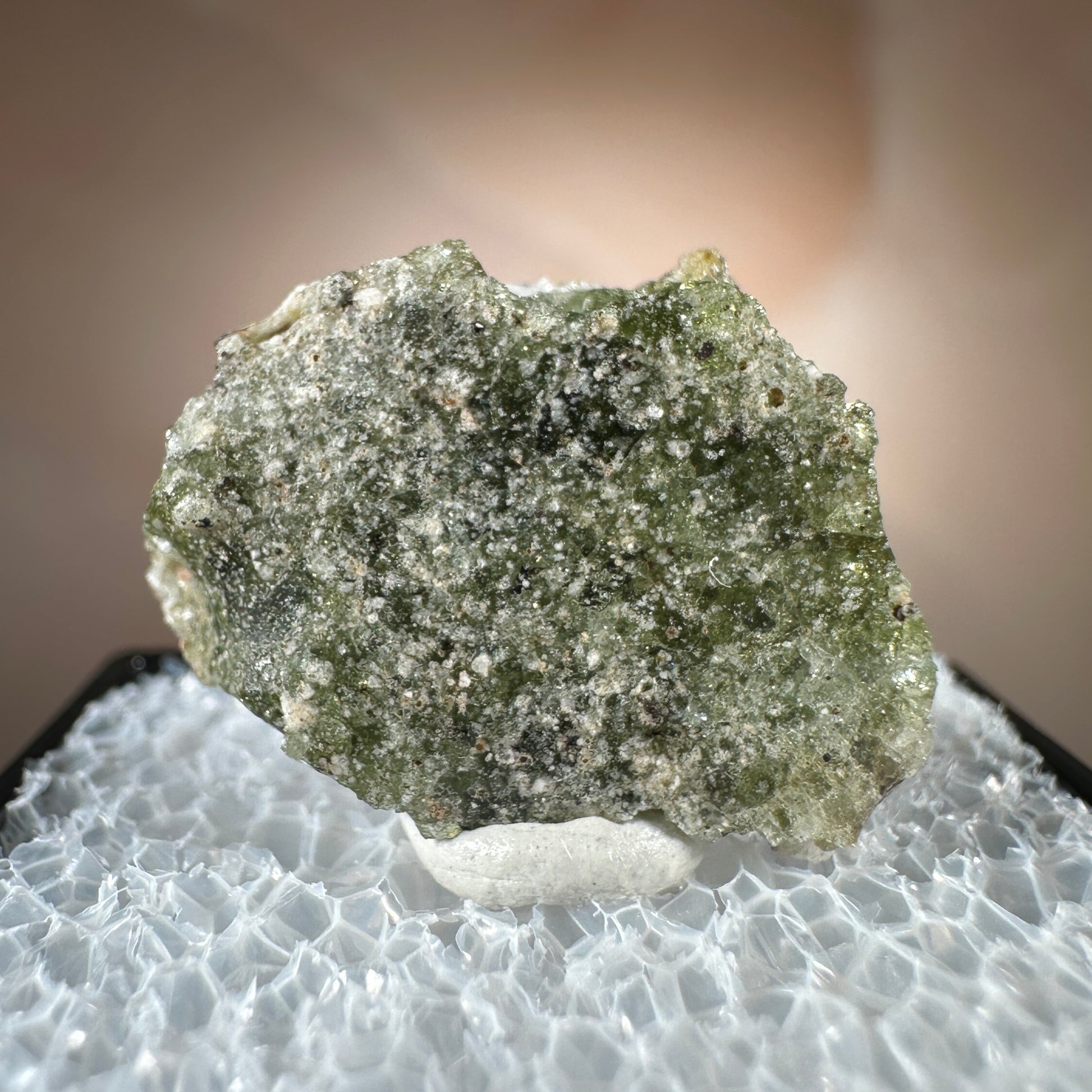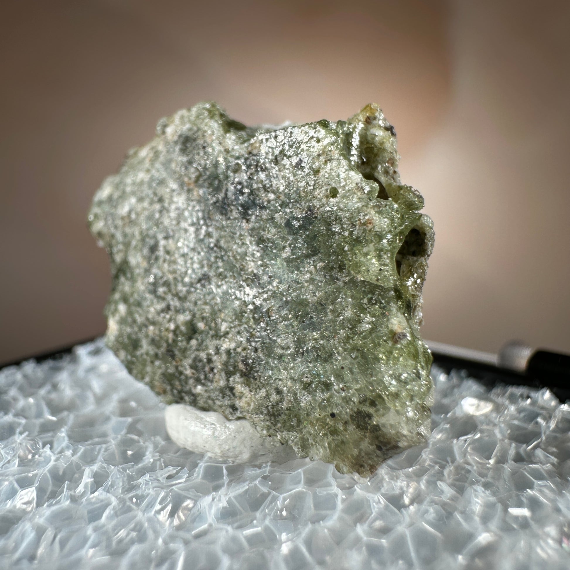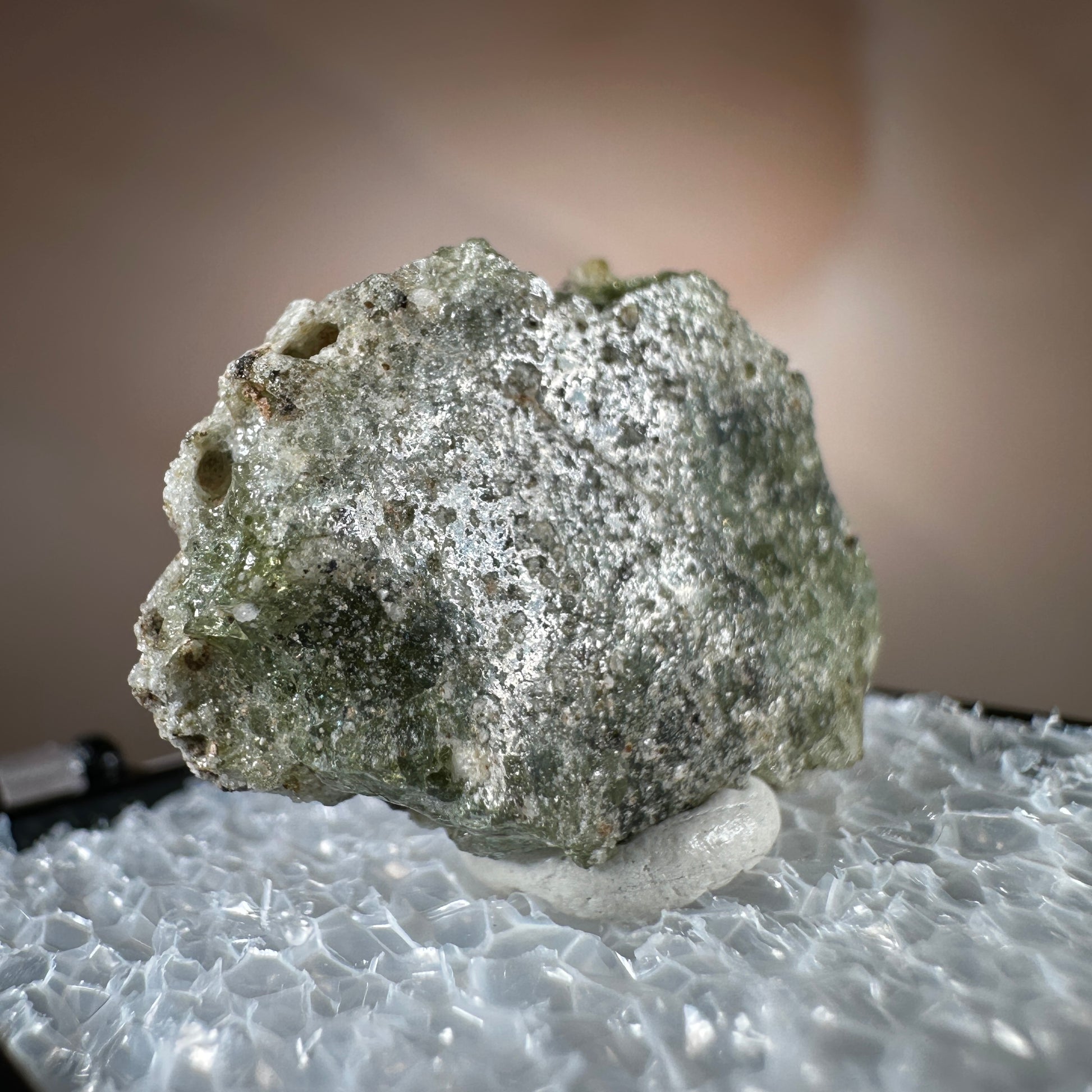 One interesting characteristic of Trinitite, is the sand grain textured bottom, with a smooth melted upper surface. This has lead many to believe these Trinitite pieces were actually formed from sand that was sucked up into the fireball of the explosion and later fell into the crater, rather than simply melting in place beneath the explosion. The Trinity test site is usually off limits, opening only 1-2 times a year for visitors. Our Trinitite is from a former rock shop owner who retired years ago, he had this Trinitite stored away for decades.