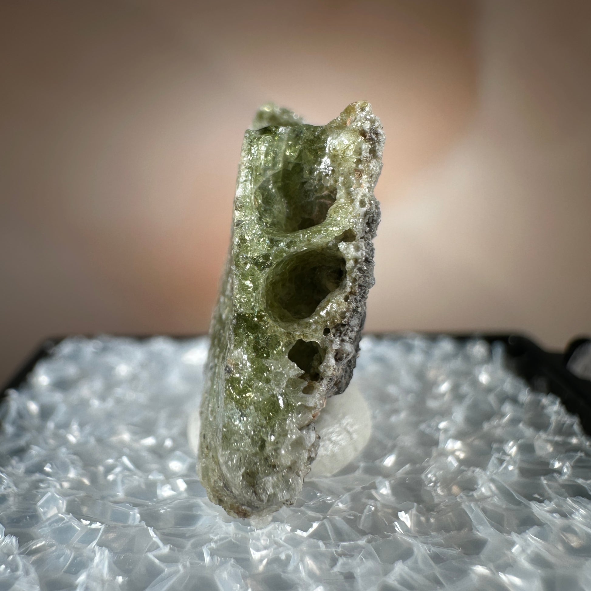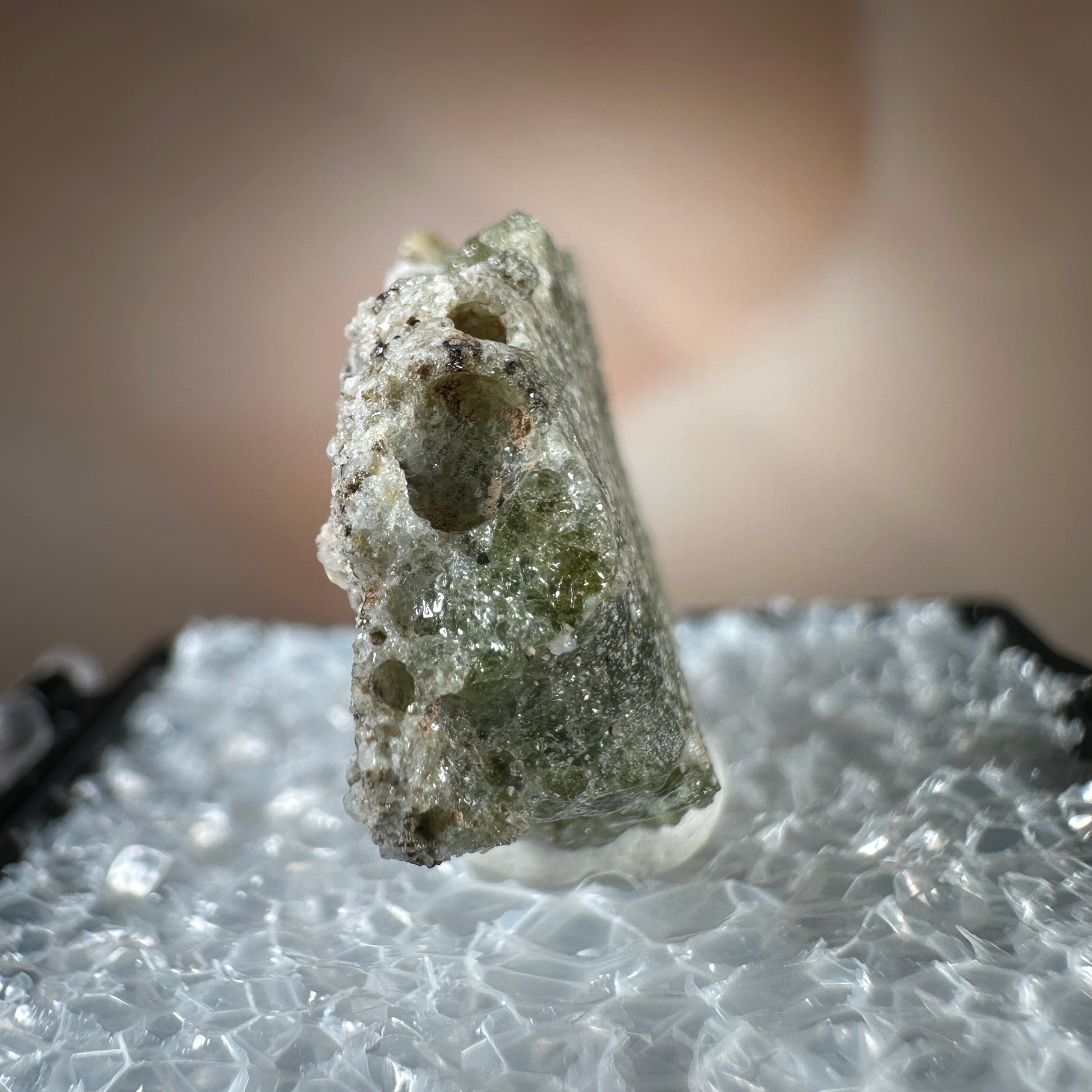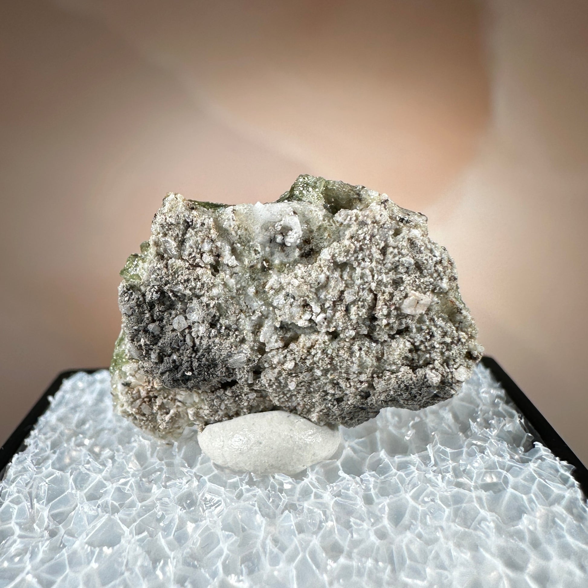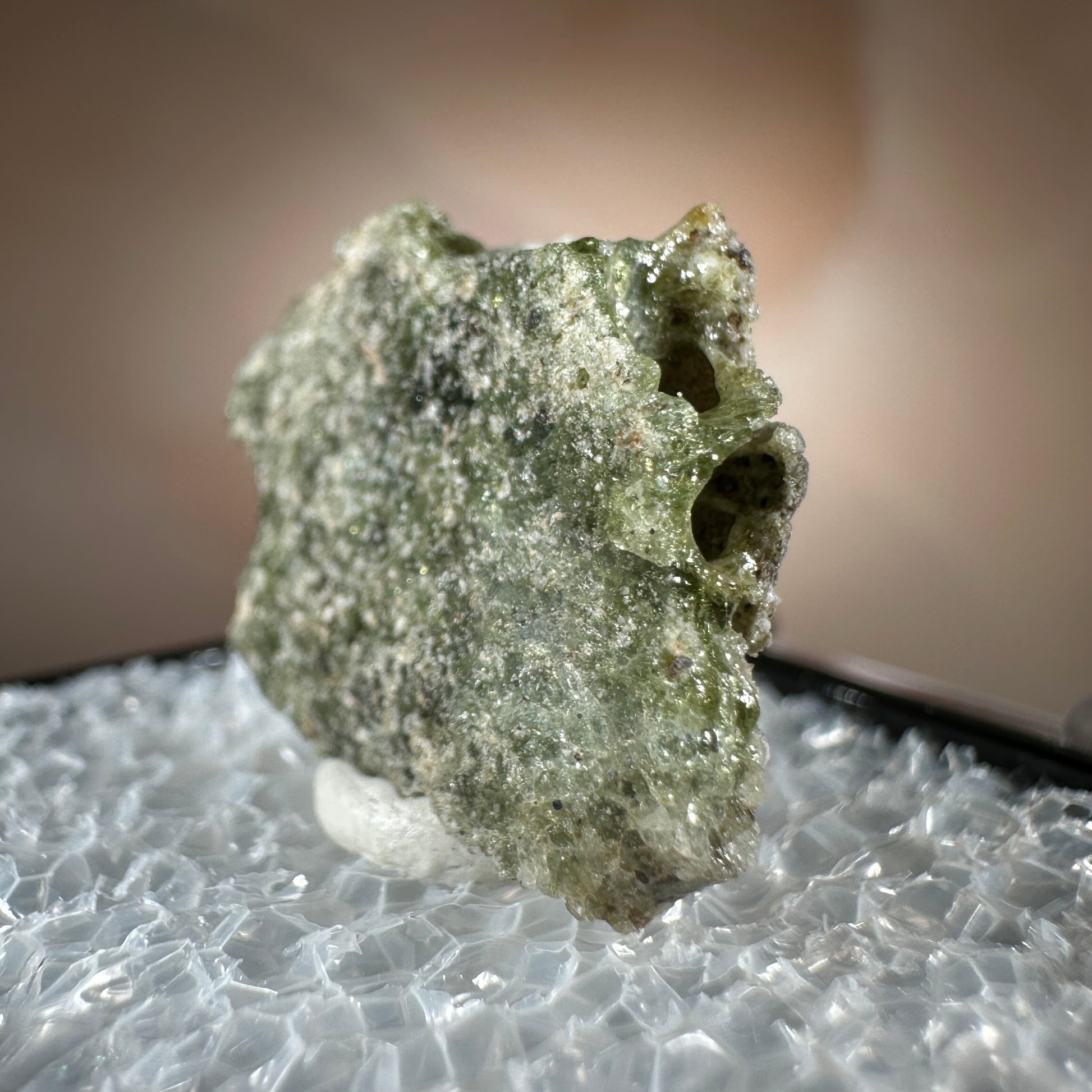 One interesting characteristic of Trinitite, is the sand grain textured bottom, with a smooth melted upper surface. This has lead many to believe these Trinitite pieces were actually formed from sand that was sucked up into the fireball of the explosion and later fell into the crater, rather than simply melting in place beneath the explosion. The Trinity test site is usually off limits, opening only 1-2 times a year for visitors. Our Trinitite is from a former rock shop owner who retired years ago, he had this Trinitite stored away for decades.