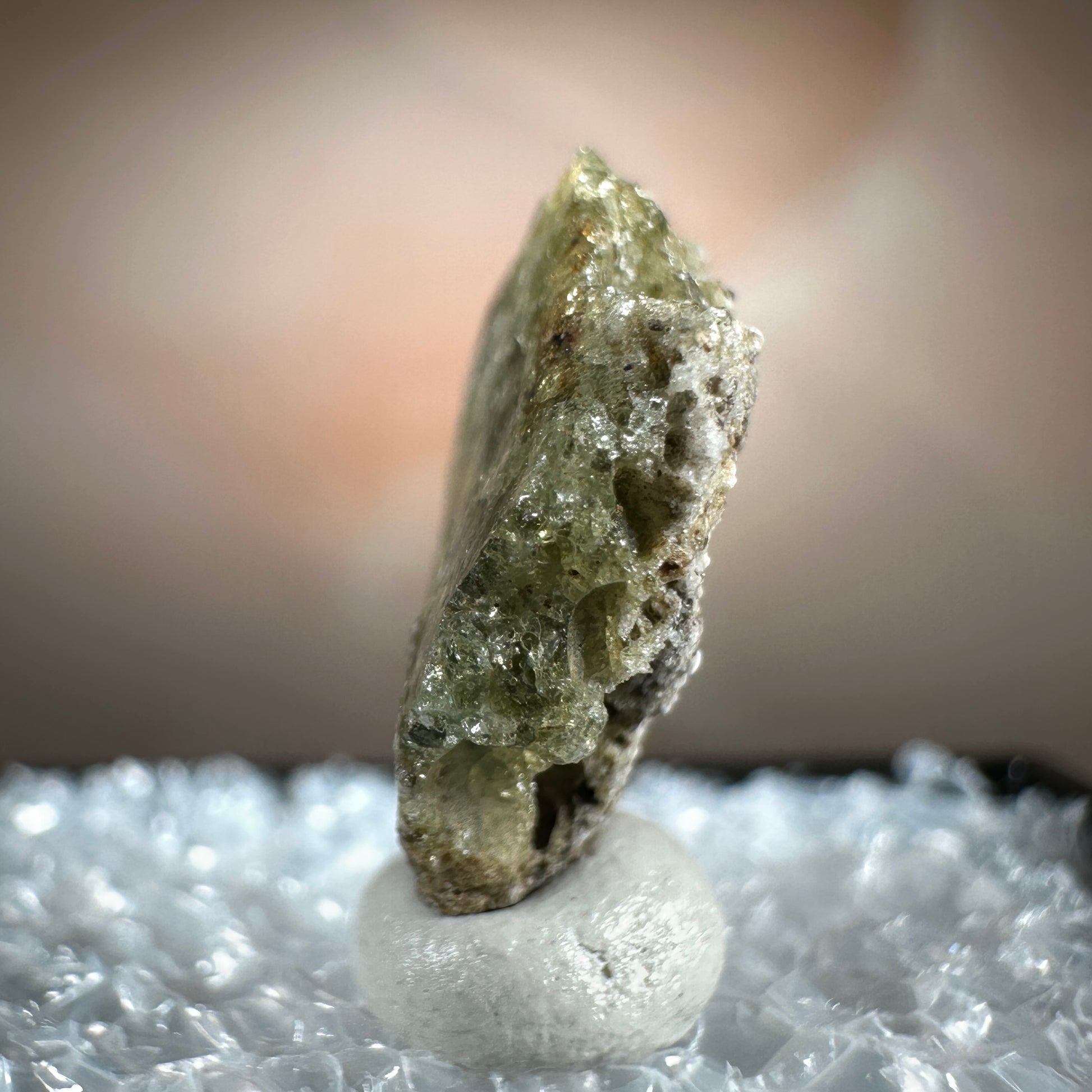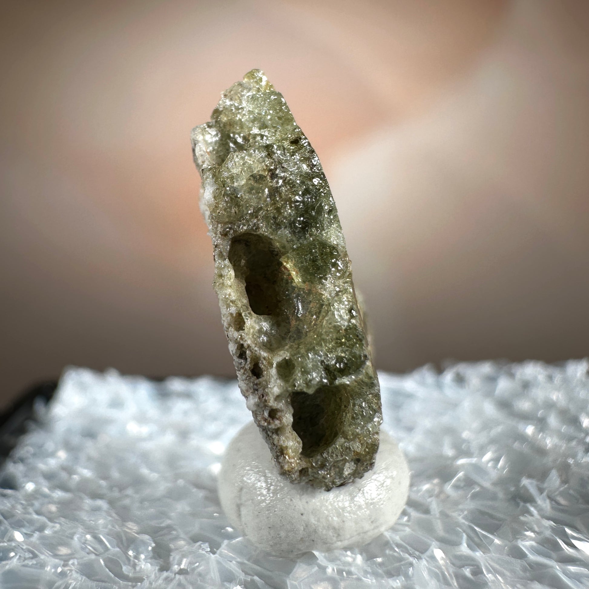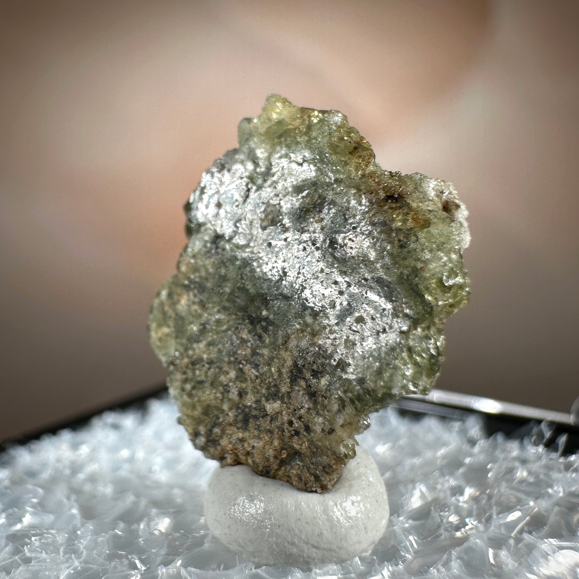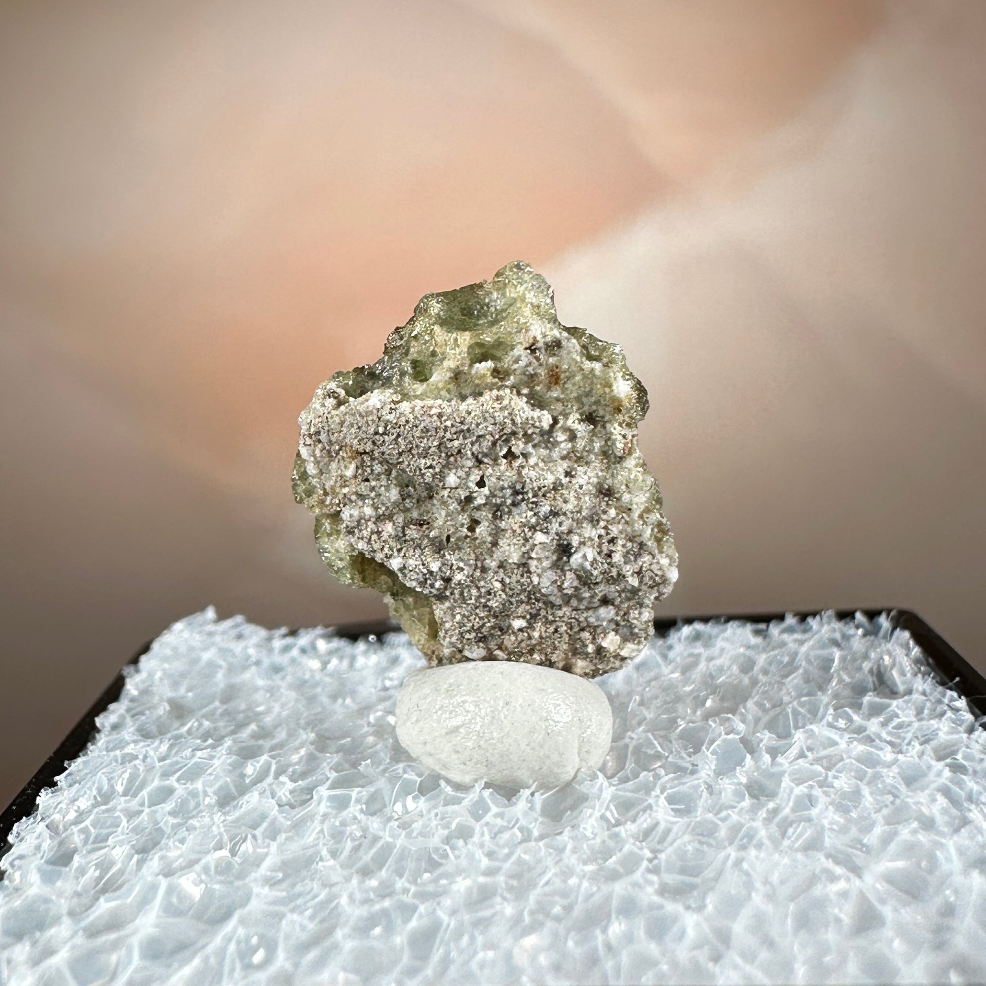 One interesting characteristic of Trinitite, is the sand grain textured bottom, with a smooth melted upper surface. This has lead many to believe these Trinitite pieces were actually formed from sand that was sucked up into the fireball of the explosion and later fell into the crater, rather than simply melting in place beneath the explosion. The Trinity test site is usually off limits, opening only 1-2 times a year for visitors. Our Trinitite is from a former rock shop owner who retired years ago, he had this Trinitite stored away for decades.