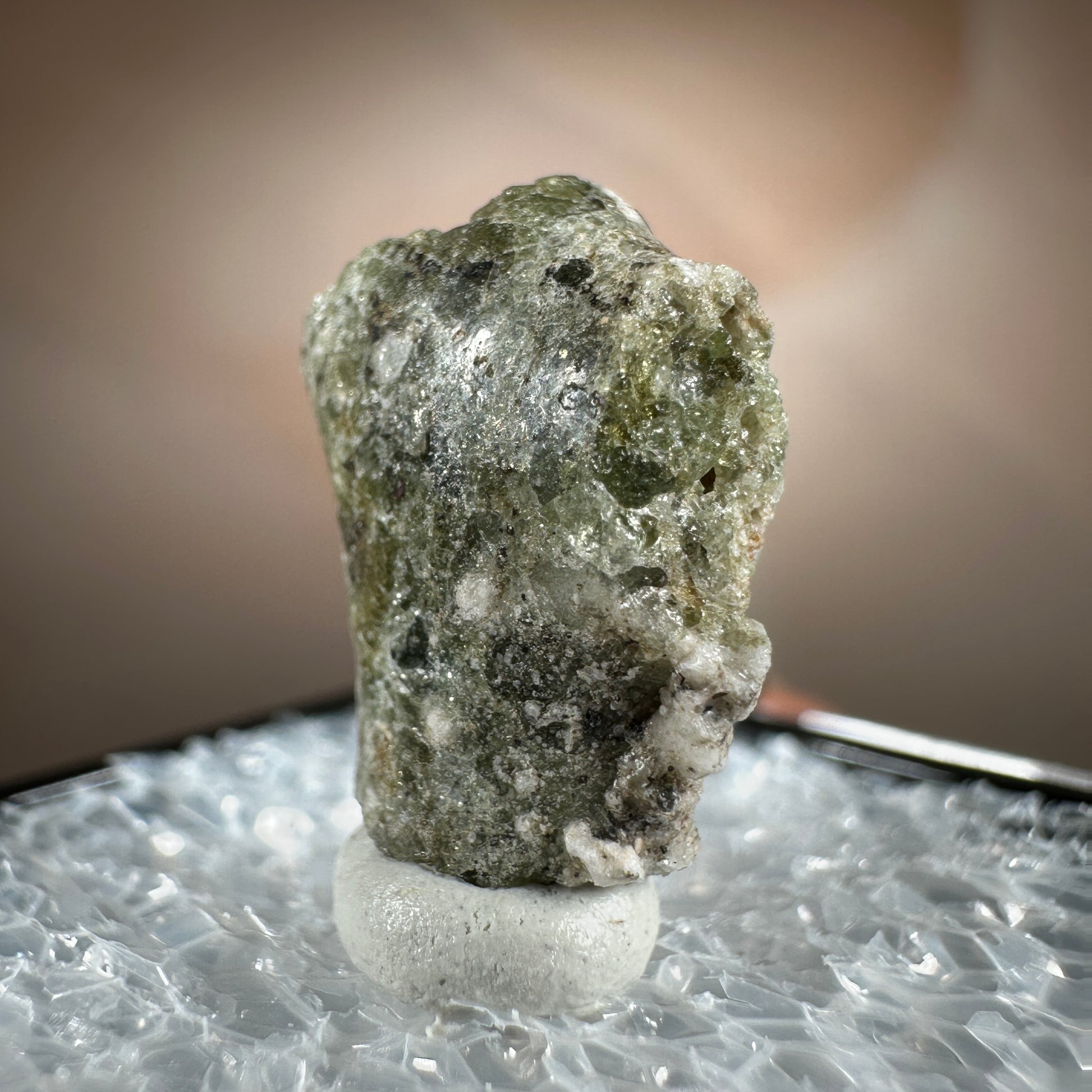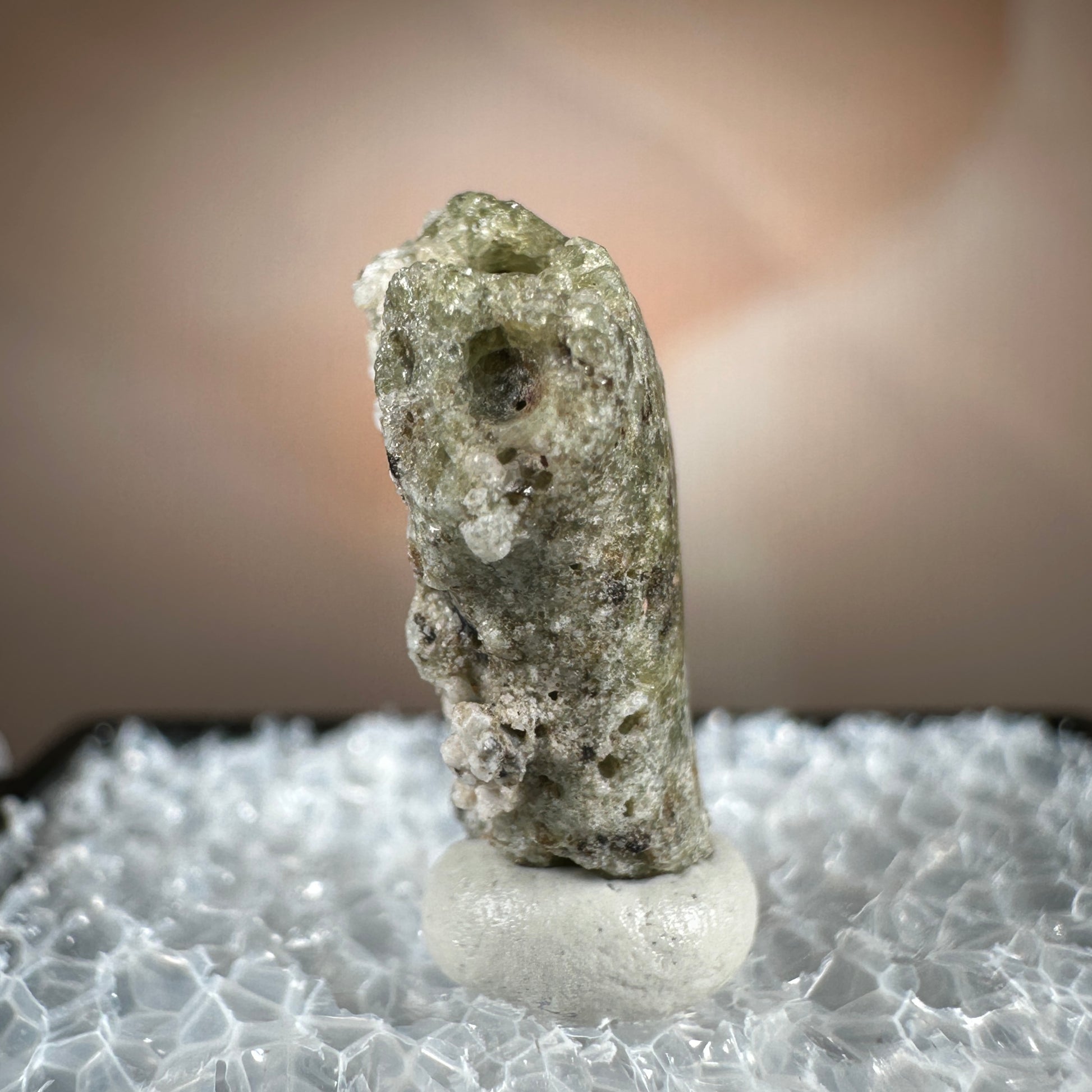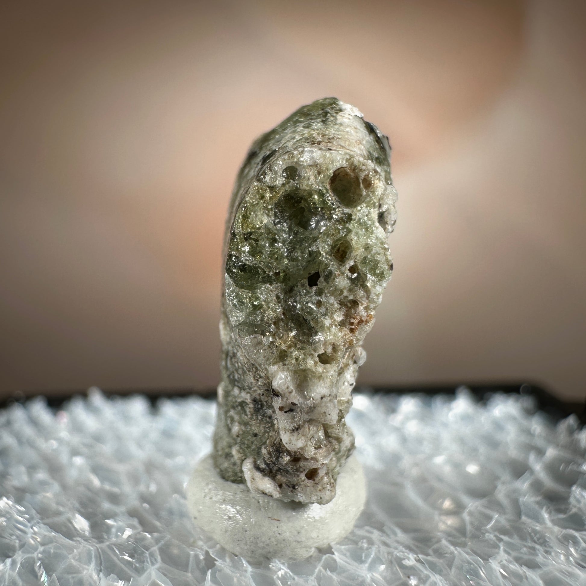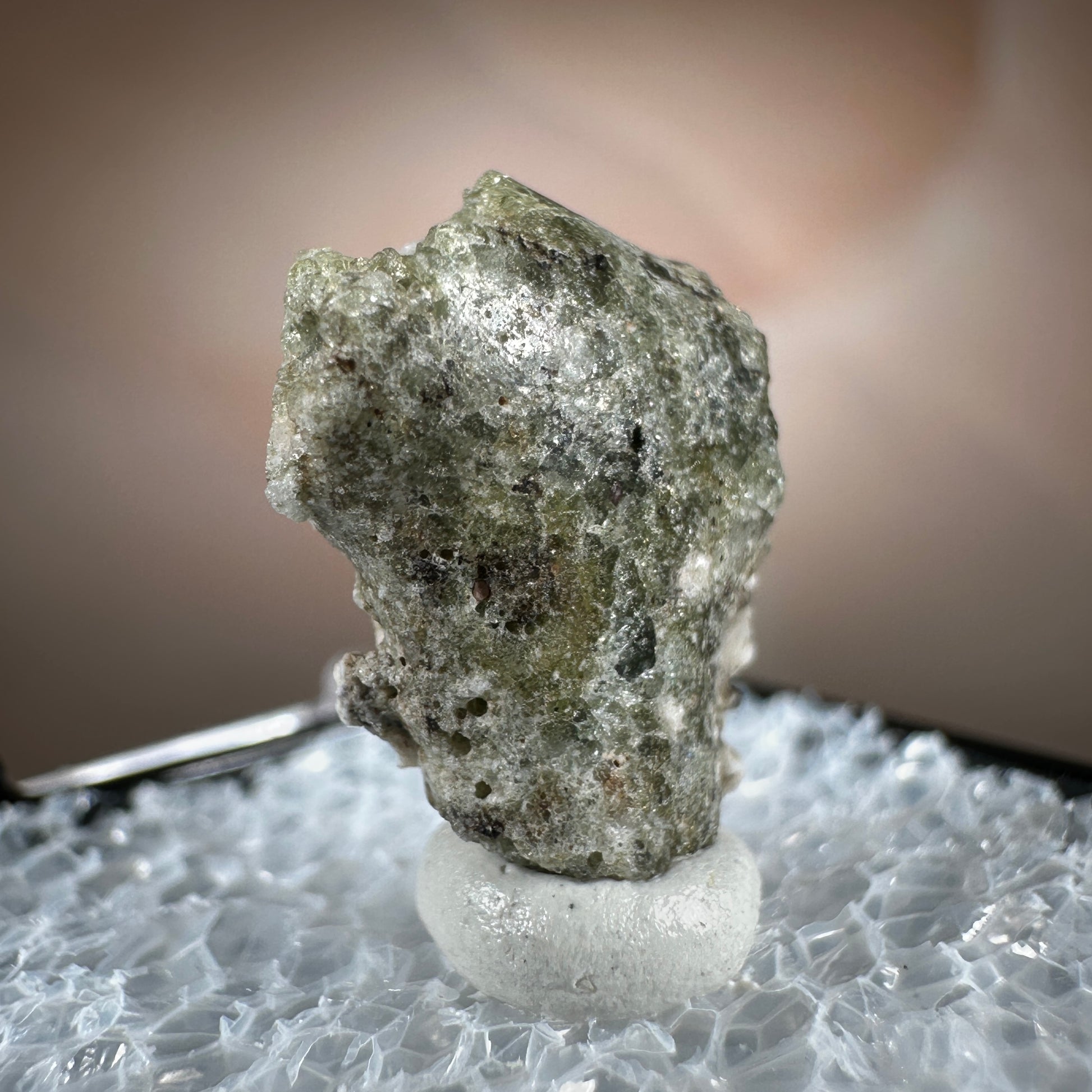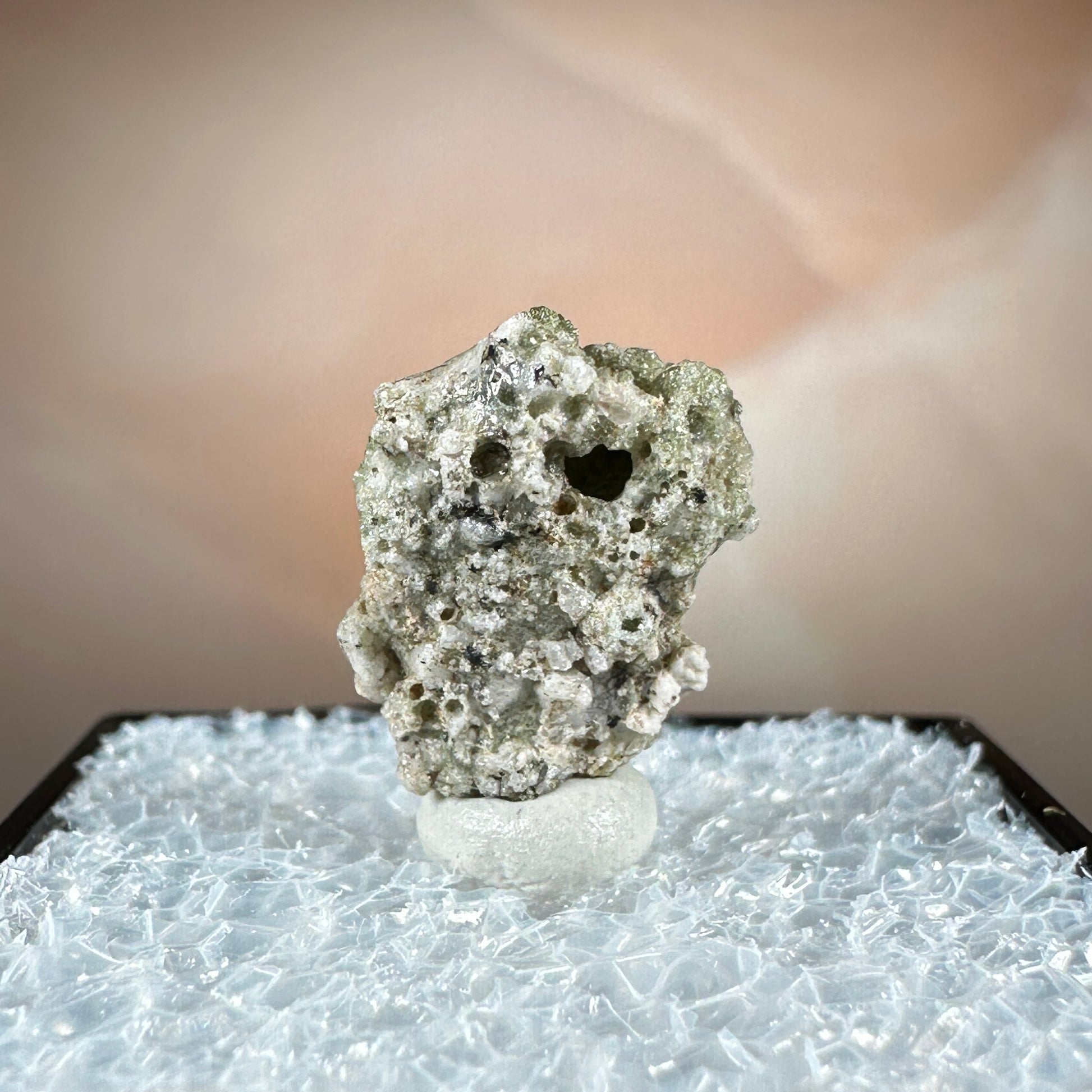 One interesting characteristic of Trinitite, is the sand grain textured bottom, with a smooth melted upper surface. This has lead many to believe these Trinitite pieces were actually formed from sand that was sucked up into the fireball of the explosion and later fell into the crater, rather than simply melting in place beneath the explosion. The Trinity test site is usually off limits, opening only 1-2 times a year for visitors. Our Trinitite is from a former rock shop owner who retired years ago, he had this Trinitite stored away for decades.