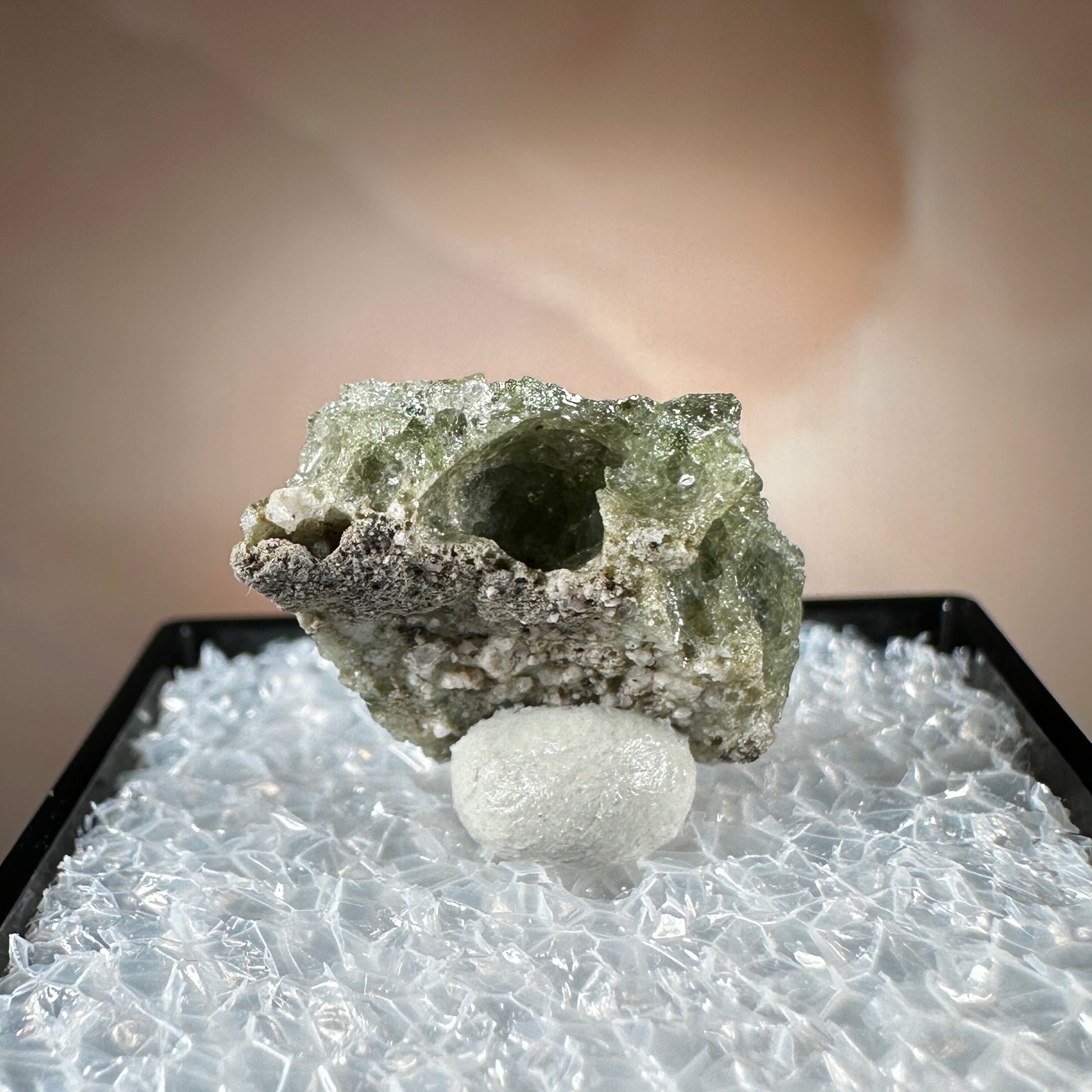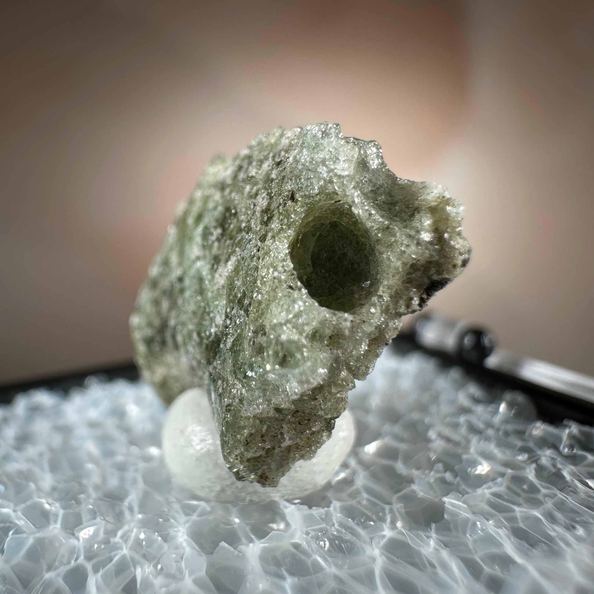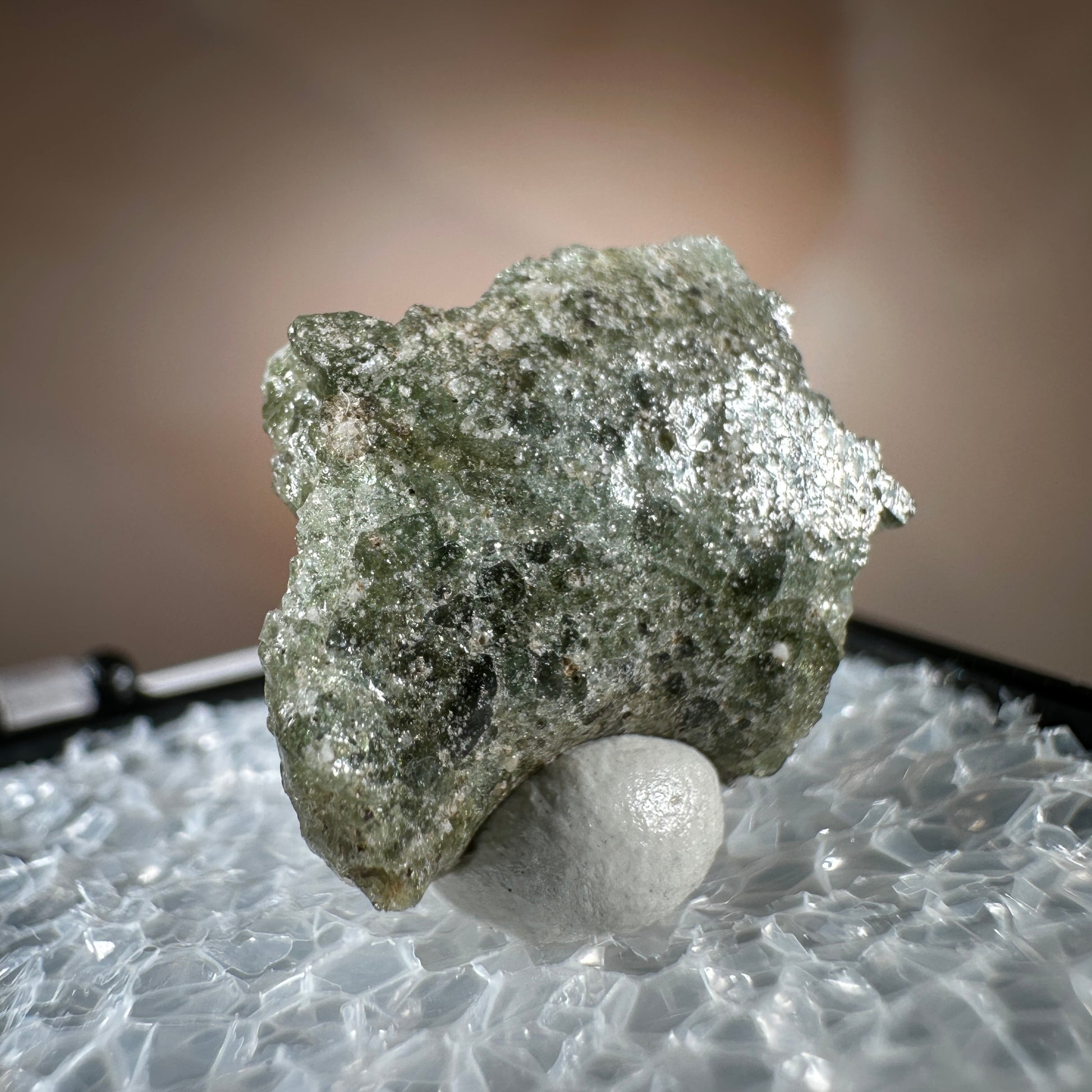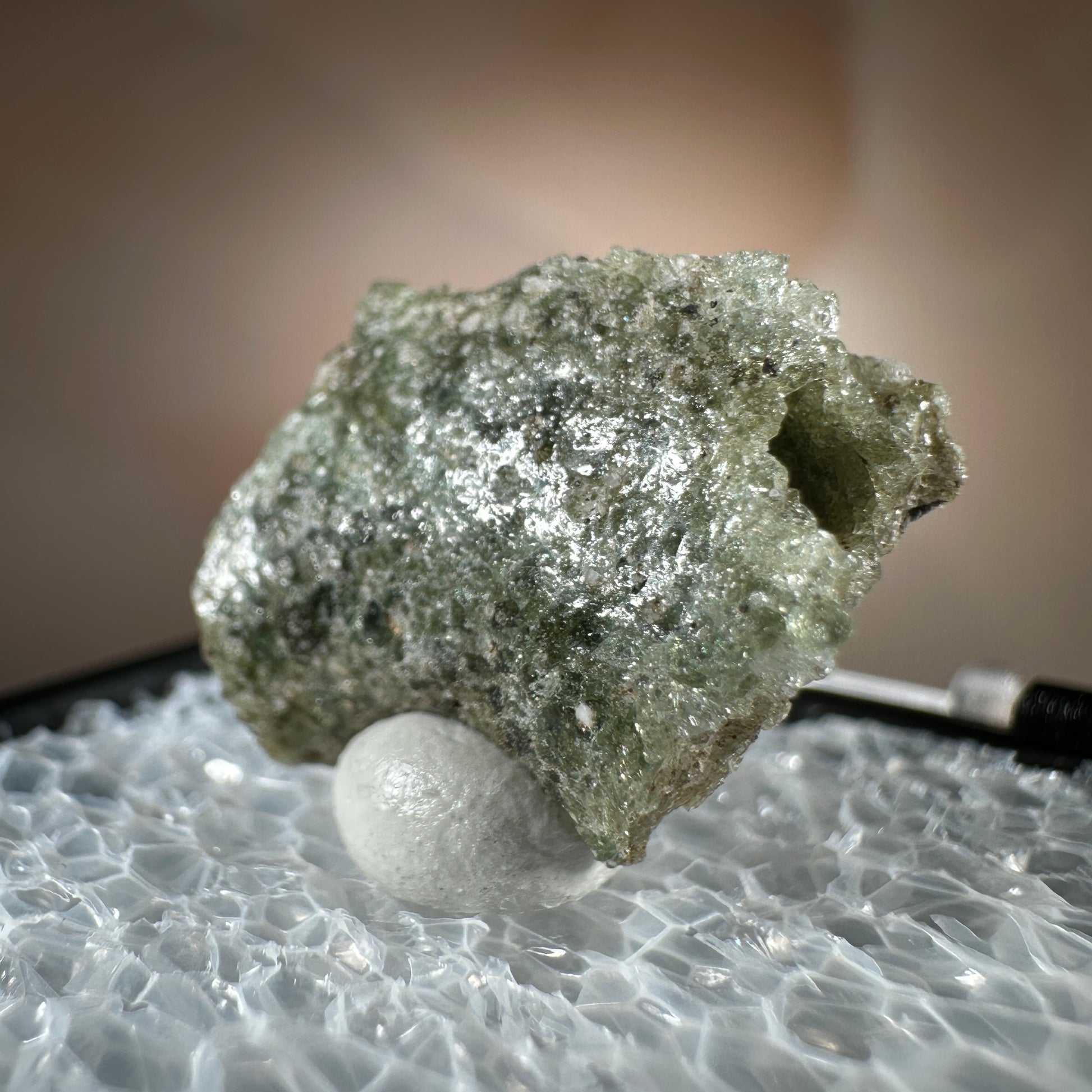 One interesting characteristic of Trinitite, is the sand grain textured bottom, with a smooth melted upper surface. This has lead many to believe these Trinitite pieces were actually formed from sand that was sucked up into the fireball of the explosion and later fell into the crater, rather than simply melting in place beneath the explosion. The Trinity test site is usually off limits, opening only 1-2 times a year for visitors. Our Trinitite is from a former rock shop owner who retired years ago, he had this Trinitite stored away for decades.