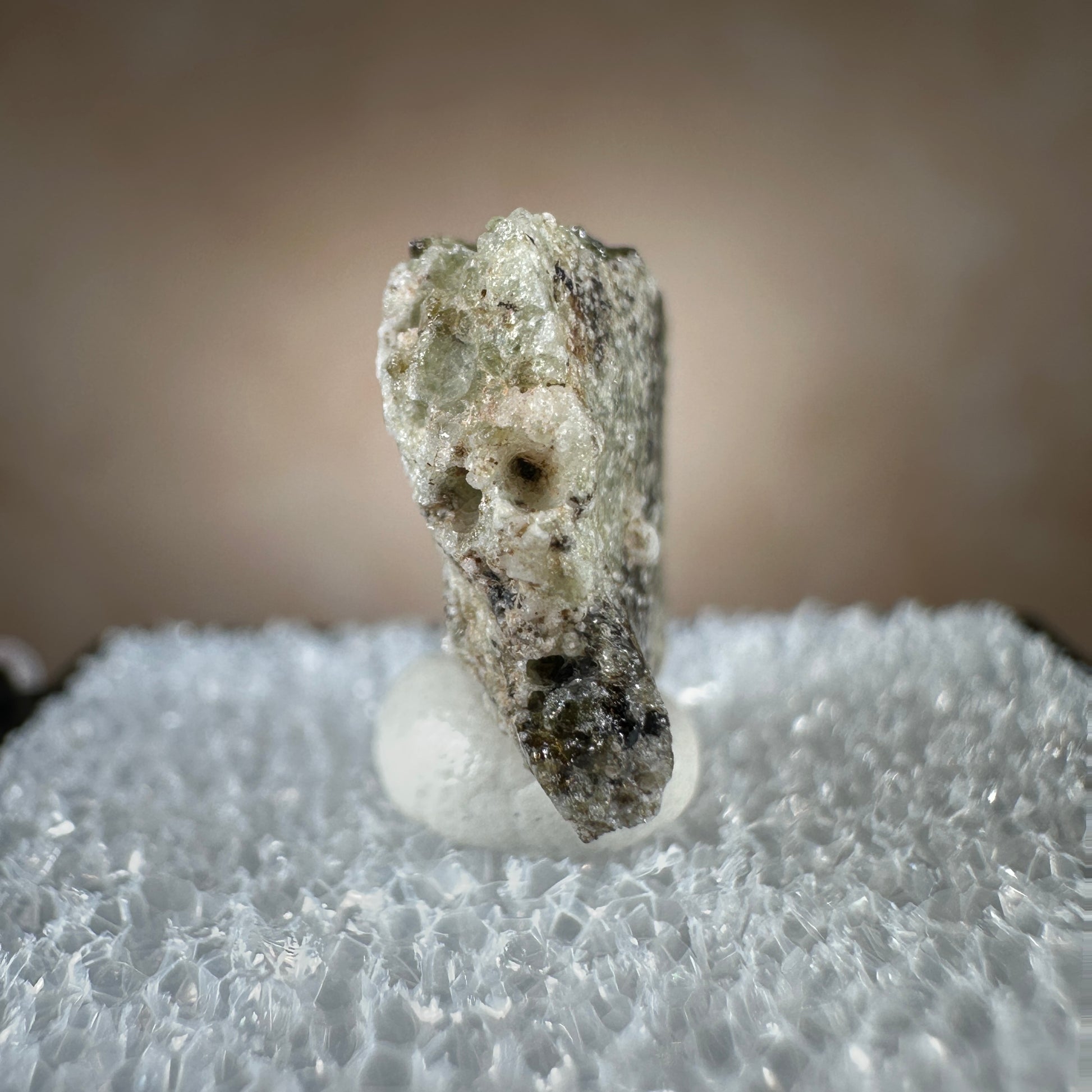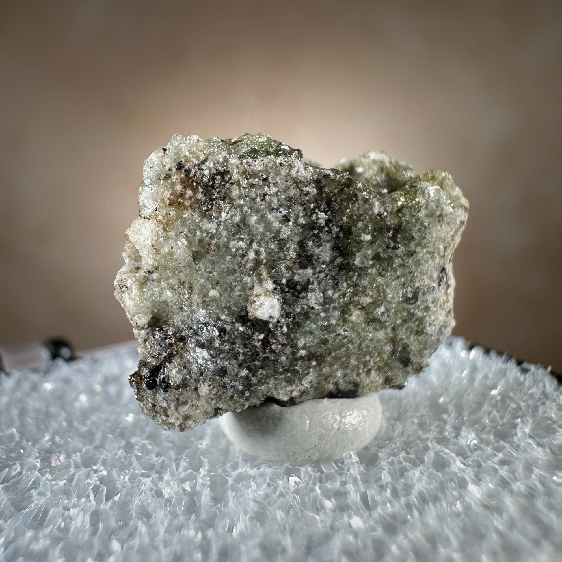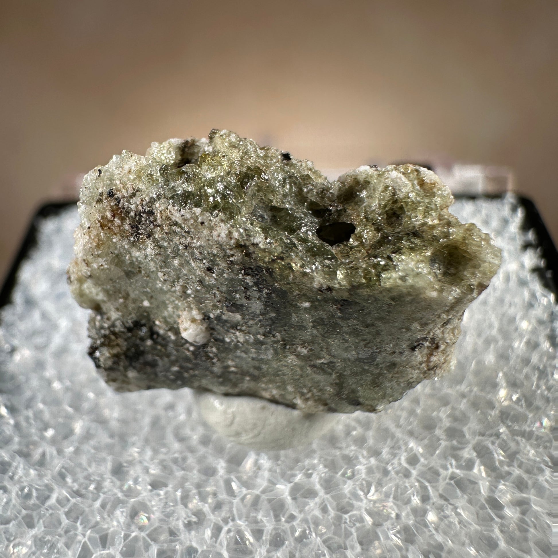 One interesting characteristic of Trinitite, is the sand grain textured bottom, with a smooth melted upper surface. This has lead many to believe these Trinitite pieces were actually formed from sand that was sucked up into the fireball of the explosion and later fell into the crater, rather than simply melting in place beneath the explosion. The Trinity test site is usually off limits, opening only 1-2 times a year for visitors. Our Trinitite is from a former rock shop owner who retired years ago, he had this Trinitite stored away for decades.